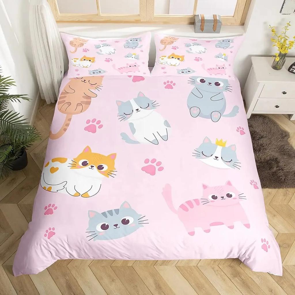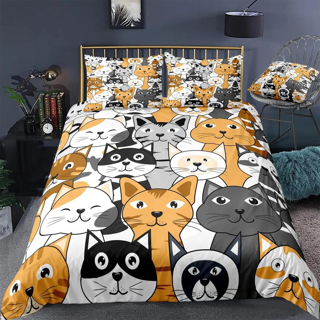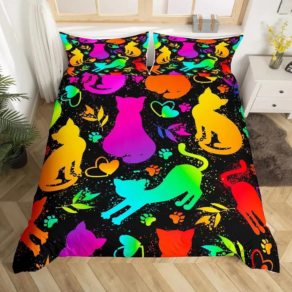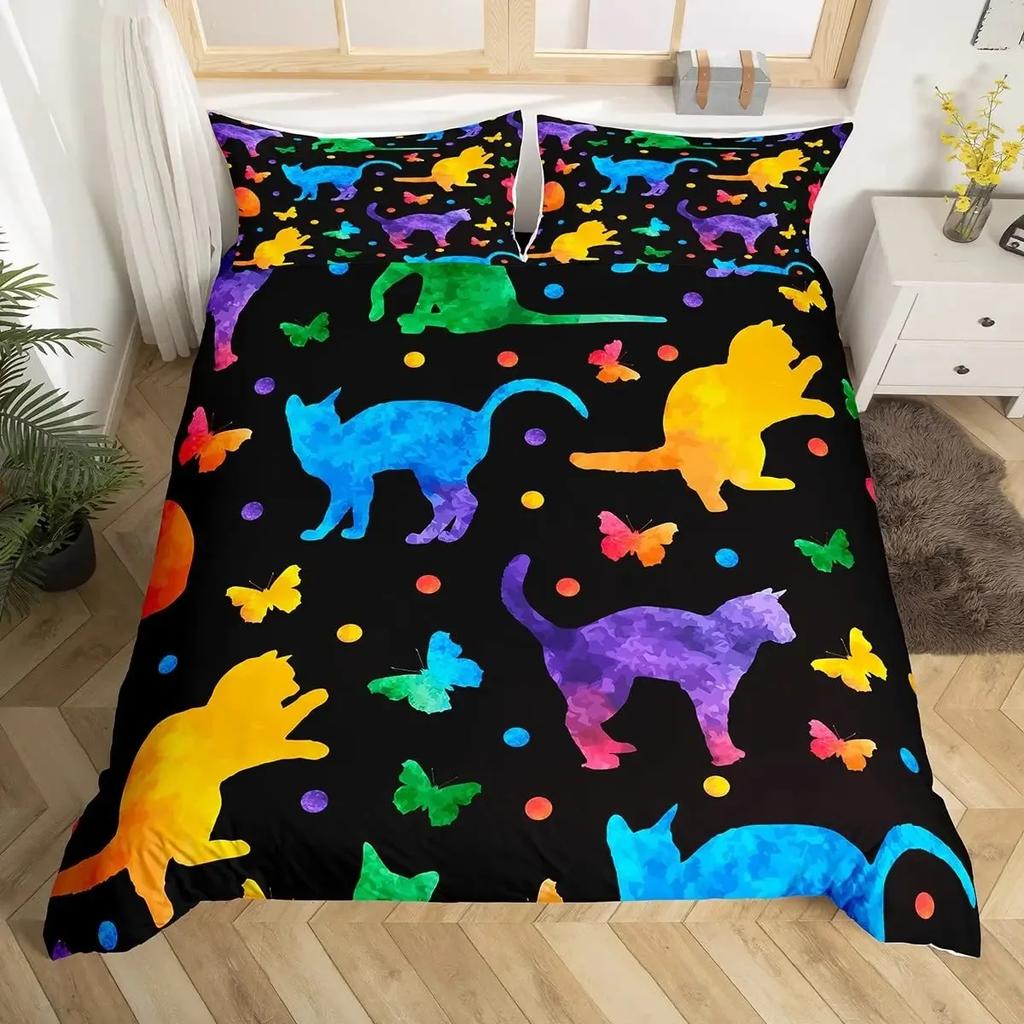 Красочный комплект пододеяльника с кошкой размера Queen, Комплекты постельного белья с кошкой в стиле абстрактного искусства, Милый комплект пододеяльника с кошкой для девочек и мальчиков