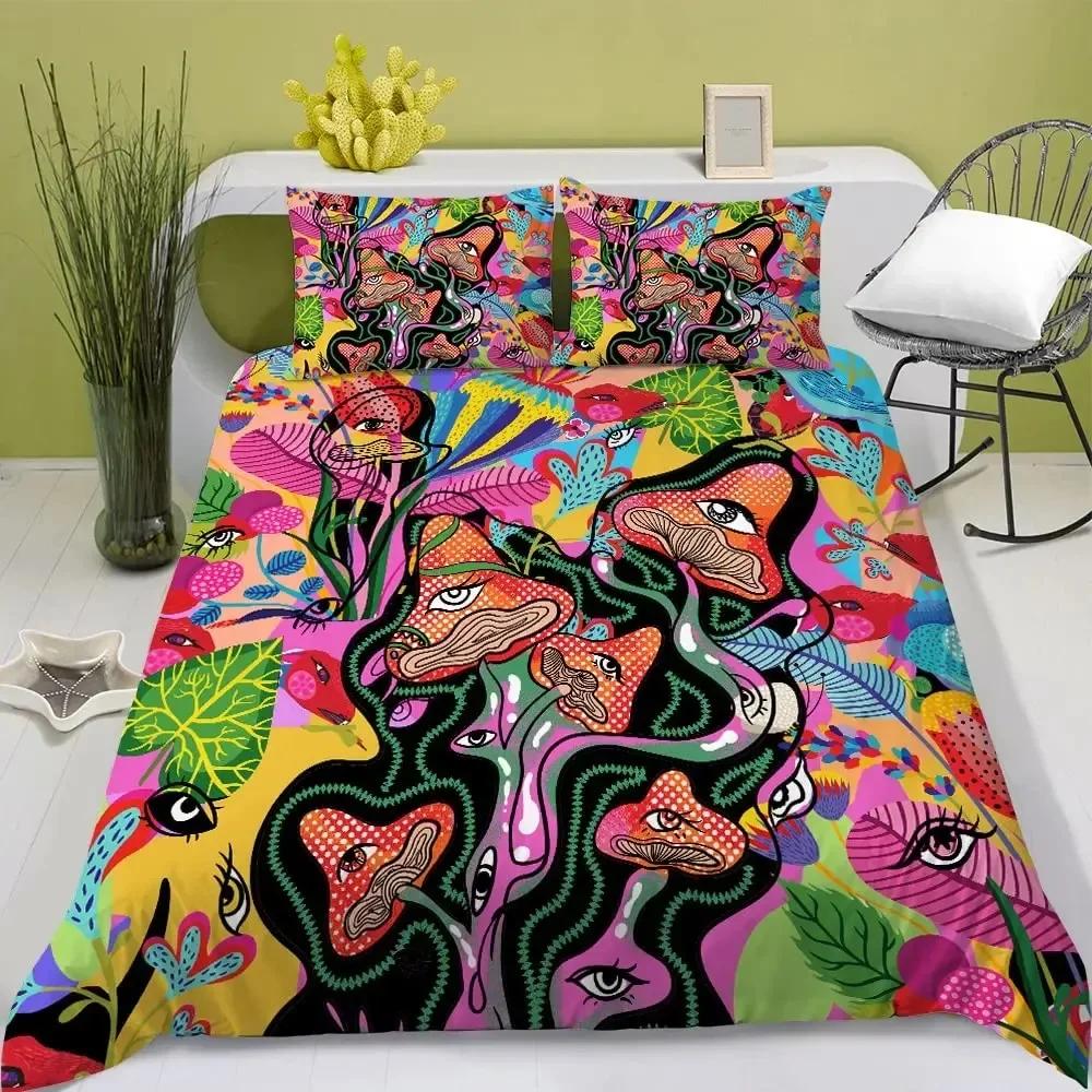 3D Psychedelic Mushroom Boho Mushroom Comfortable Duvet Quilt Cover Pillowcase Bedding Set Bedroom Decoration Home Textile