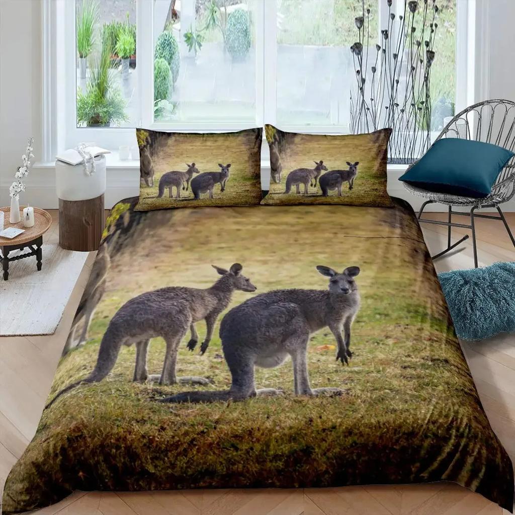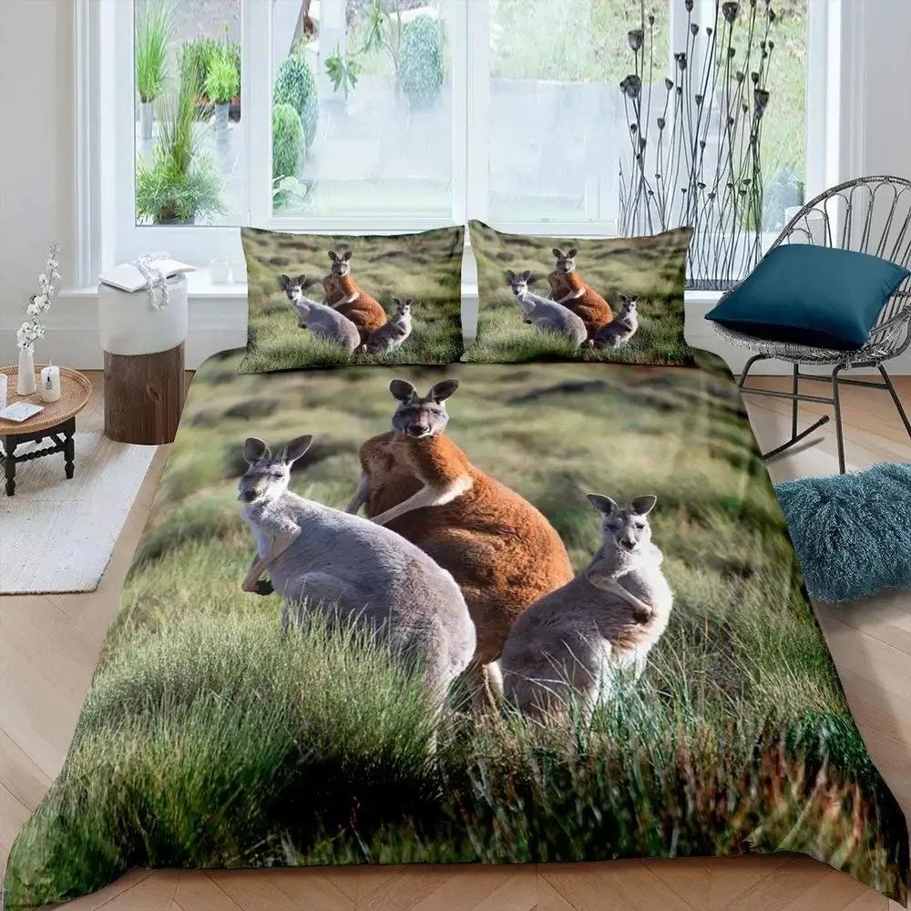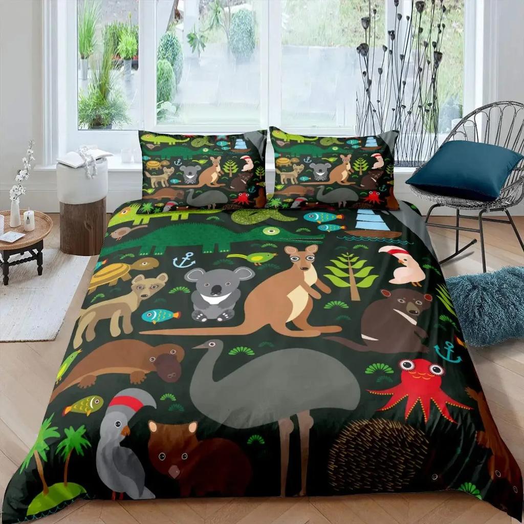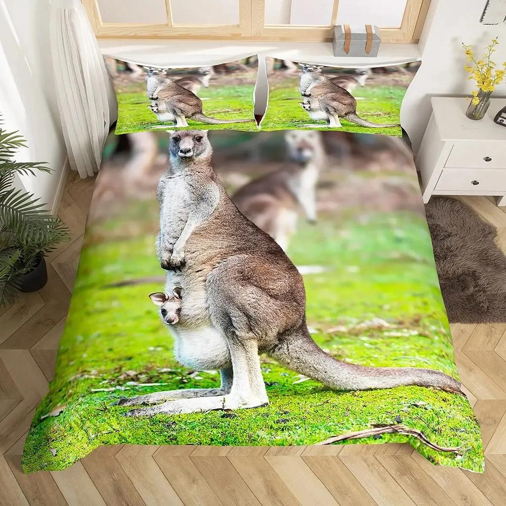 Комплект пододеяльника Кенгуру размера кинг для мальчиков и девочек, Комплект постельного белья Кенгуру, Чехол для одеяла с ветками деревьев, Покрывало с дикими животными