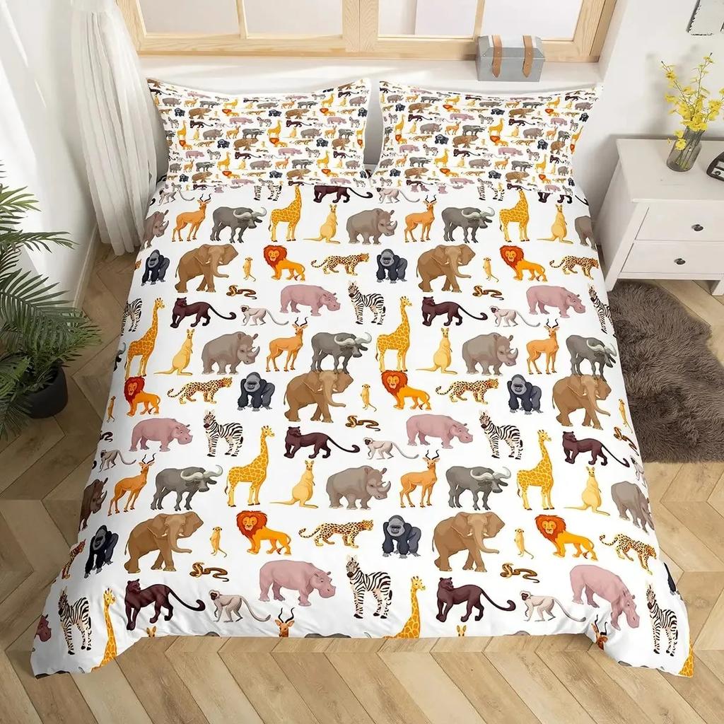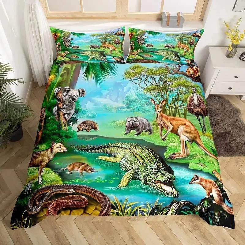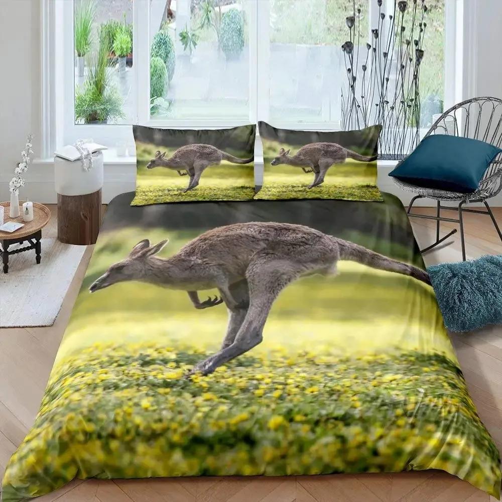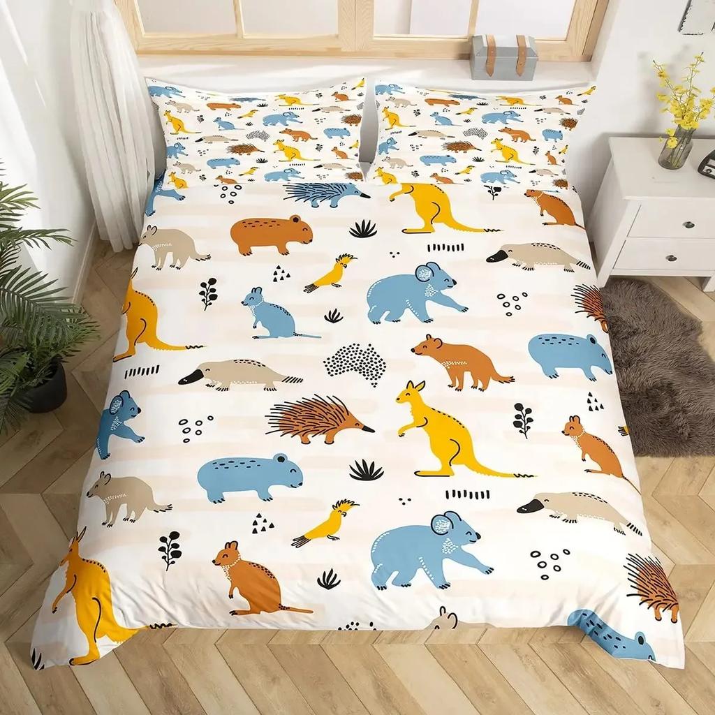 Комплект пододеяльника Кенгуру размера кинг для мальчиков и девочек, Комплект постельного белья Кенгуру, Чехол для одеяла с ветками деревьев, Покрывало с дикими животными