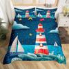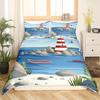 Nautical Comforter Cover Sailboat Lighthouse Duvet Cover Watercolor Ocean Themed Bedding Set Summer Beach Polyester Quilt Cover