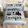 Rustic Farmhouse Style Duvet Cover Set 2/3 Pcs Old Barn Door Comforter Cover Happy Camper Print Black Sketch Drawing Quilt Cover