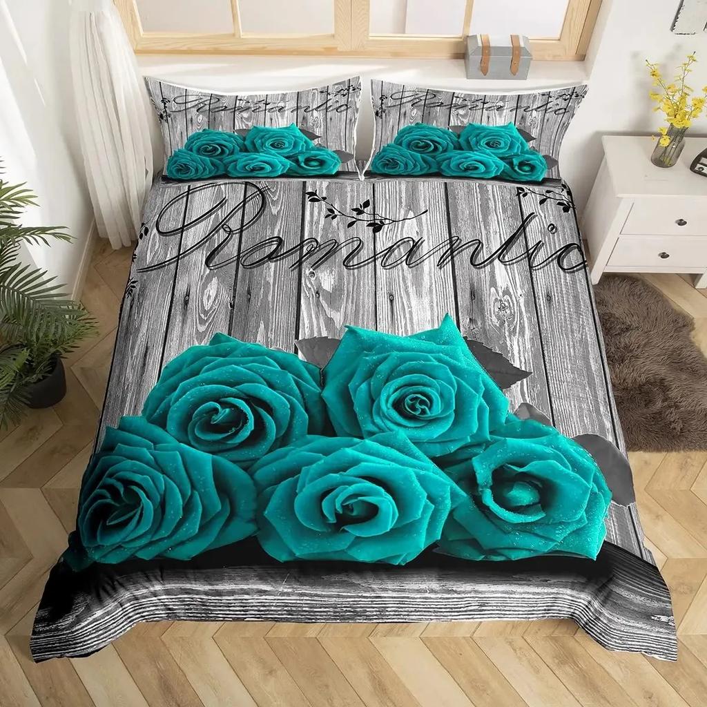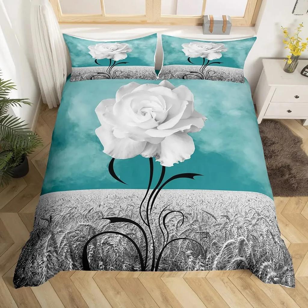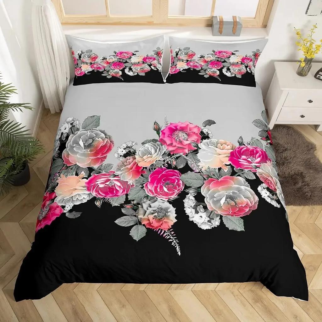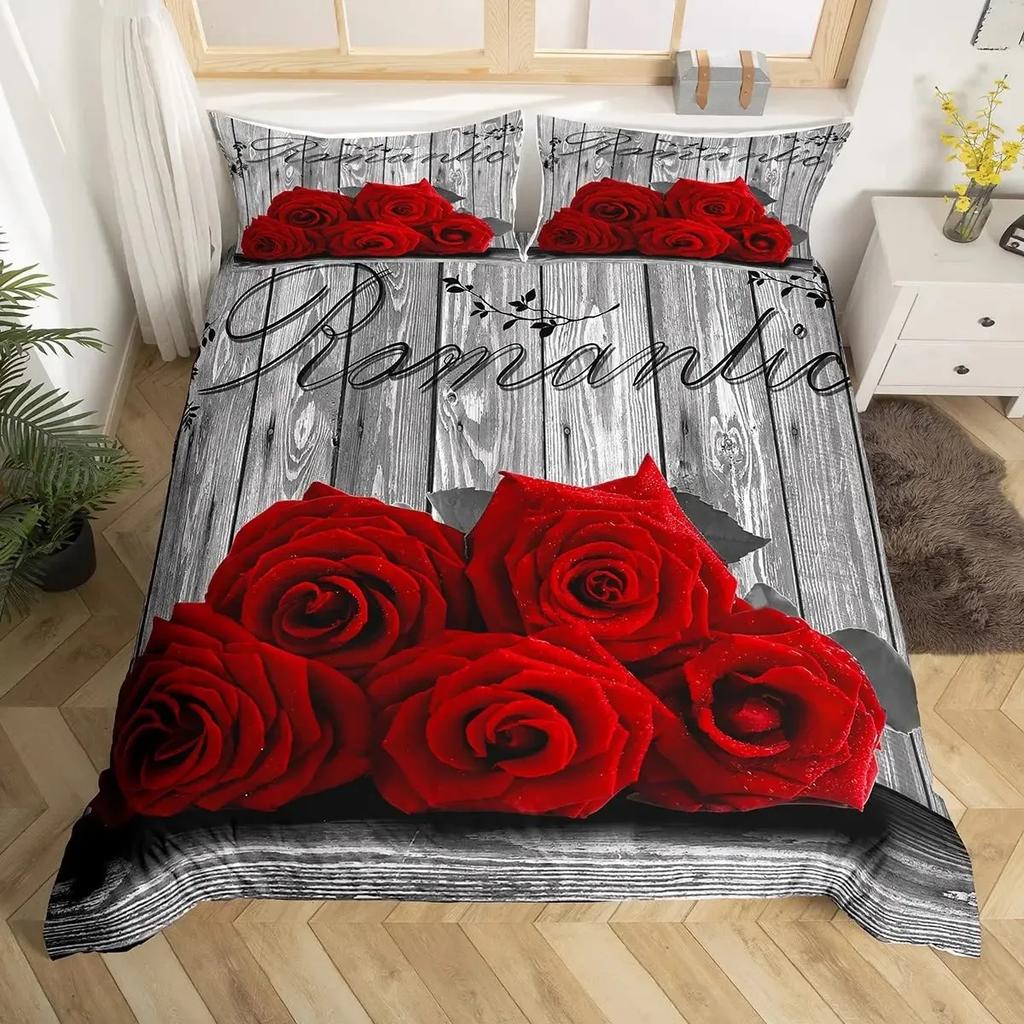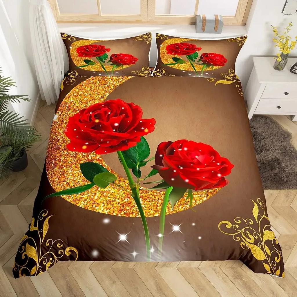 Rose Duvet Cover Set Red Rose Floral Bedding Sets Flower Butterfly Comforter Cover for Women Modern Fashion Marble Quilt Cover