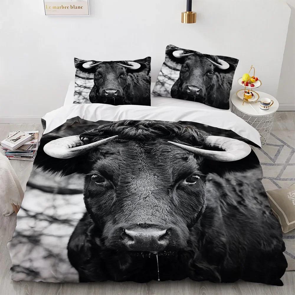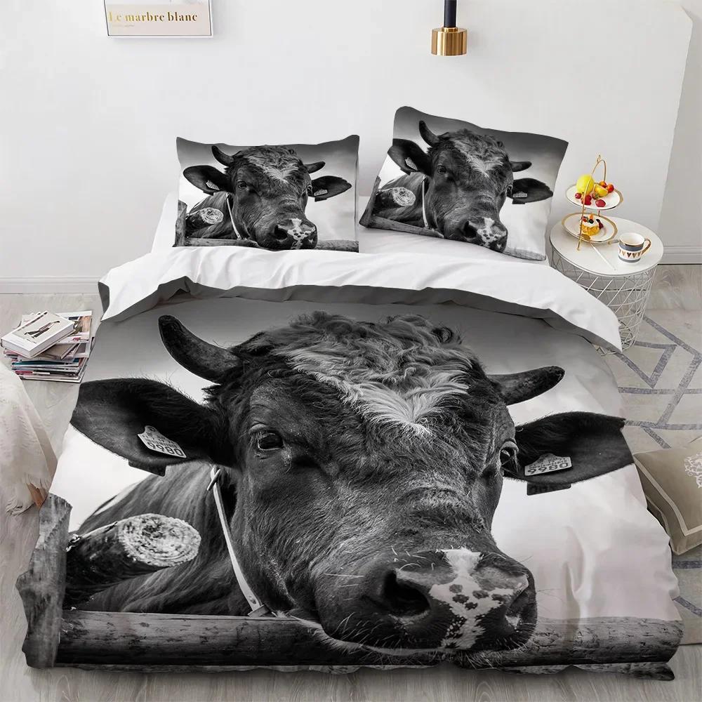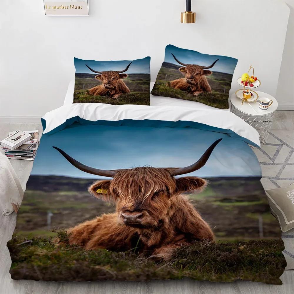 Пододеяльник с горной коровой размера кинг/квин, Комплект постельного белья с быком, забавный милый пододеяльник с травоядными для детей, мальчиков, девочек