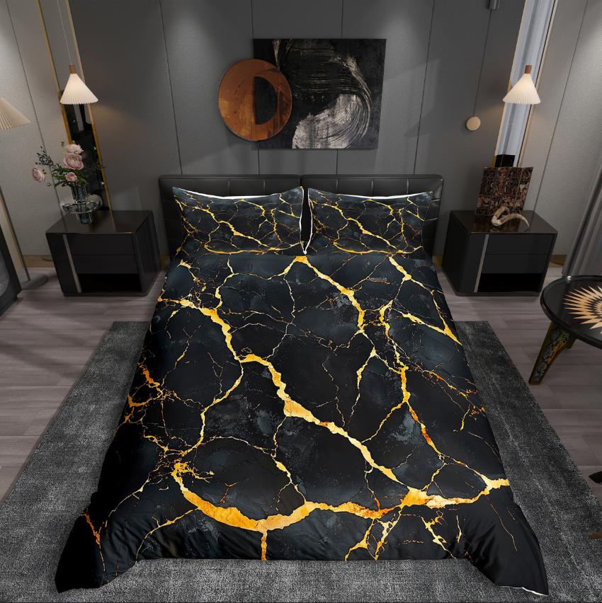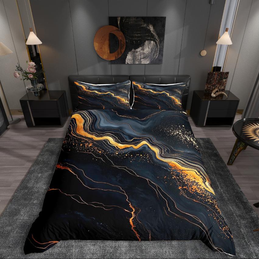 Homewish Black Stars Print Duvet Cover Set for Teen, Abstract Geometry Bedding Set, Cartoon Theme Decor