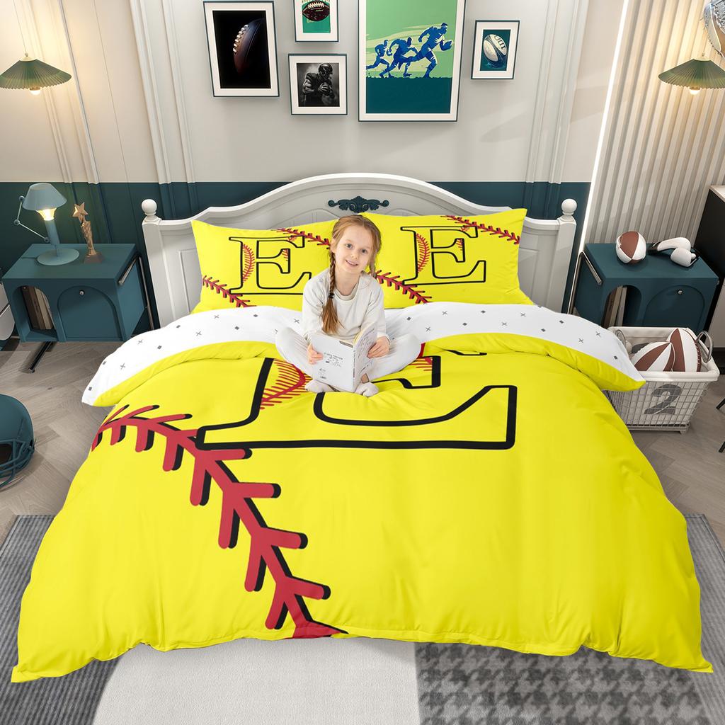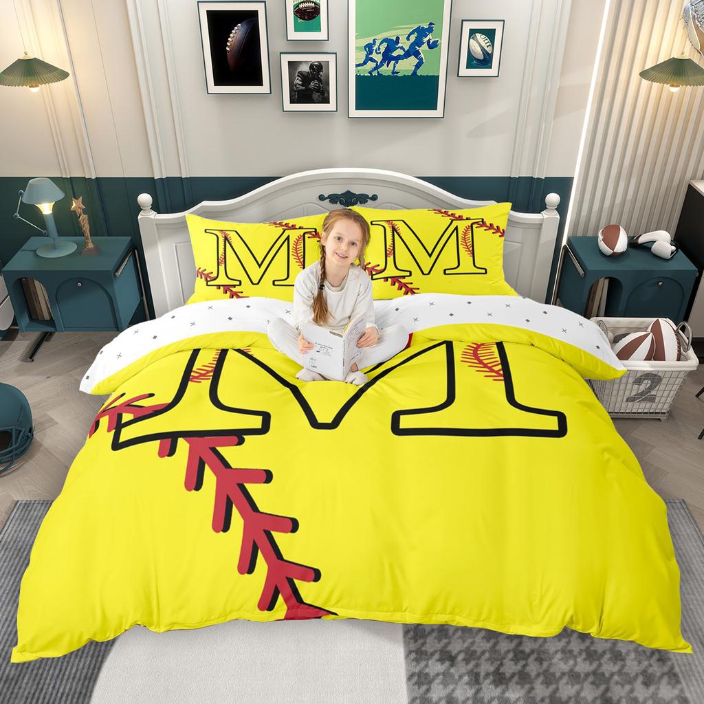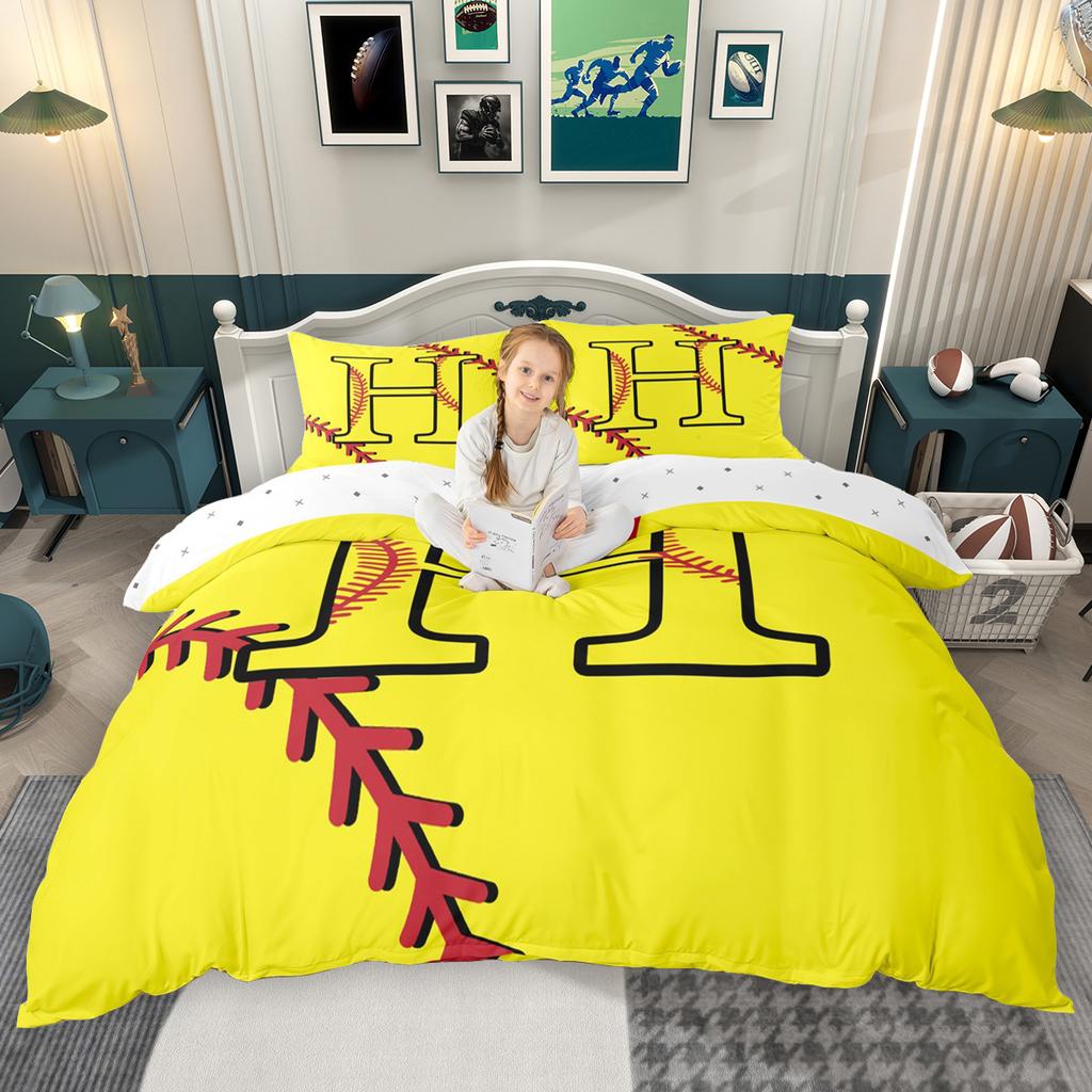 Homewish Softball Baseball Duvet Cover Set, Sports Initial Comforter Cover Set, Personalized Monogrammed Bed Set