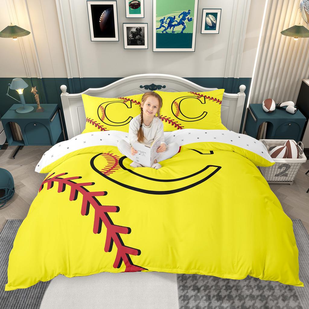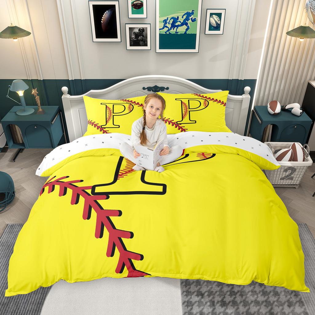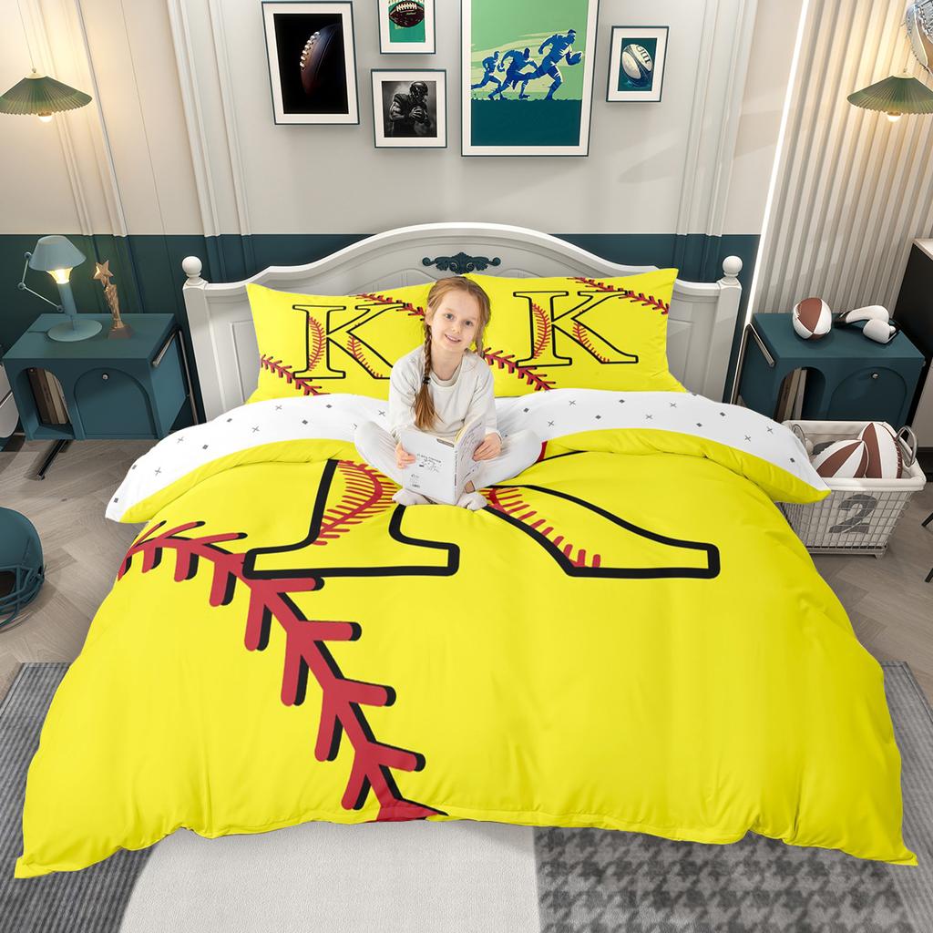 Homewish Softball Baseball Duvet Cover Set, Sports Initial Comforter Cover Set, Personalized Monogrammed Bed Set