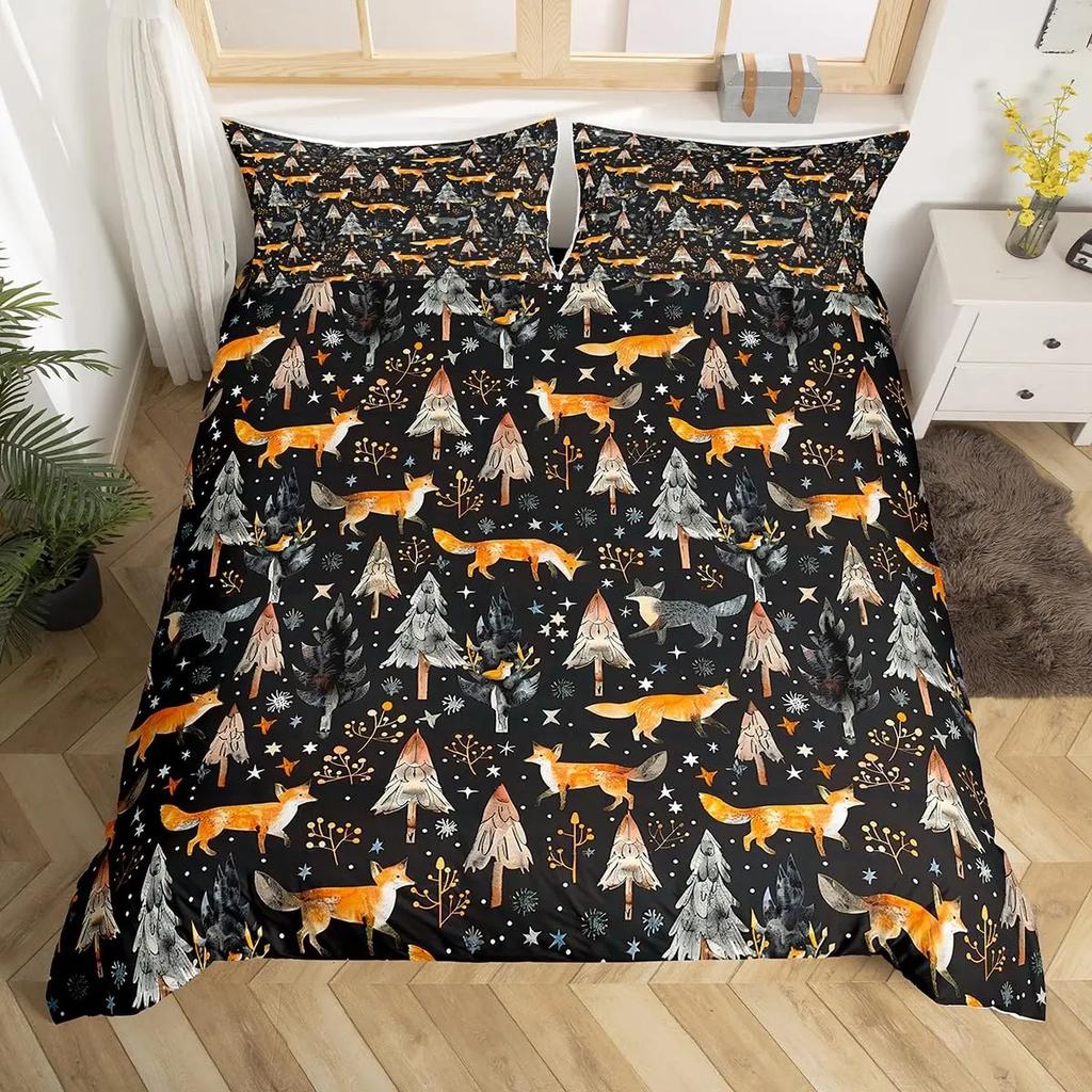 Fox Duvet Cover Sets for Kids Teens Quilt Covers Lightweight Down Room Decor Queen King Size 2 Pillowcase 1 Duvet Cover No Quilt