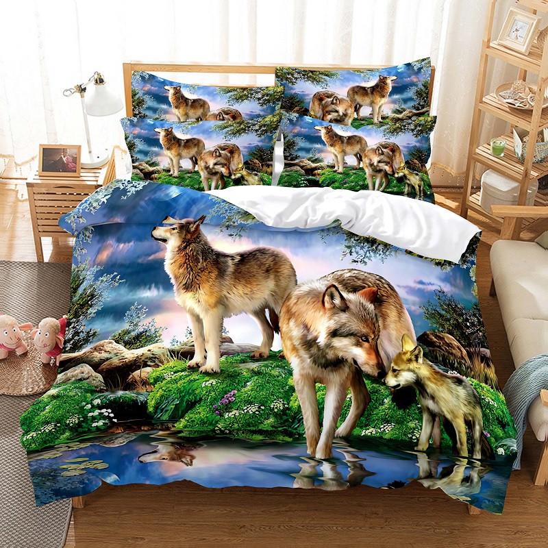 Комплект постельного белья Love Wolf, комплект пододеяльников, комплект постельного белья с 3D-печатью, комплект постельного белья размера Queen, модный дизайн