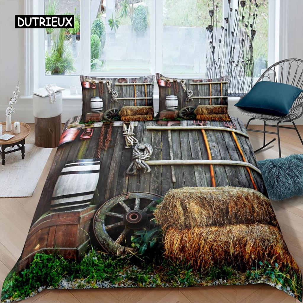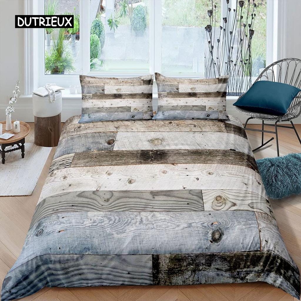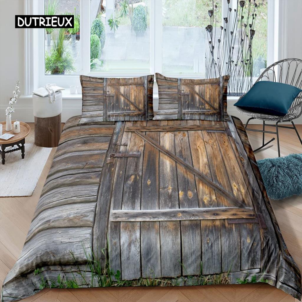Комплект постельного белья из дерева Barn Door в стиле вестерн King Size Rustic, комплект постельного белья из полиэстера в деревенском стиле, деревянная доска, фермерский дом