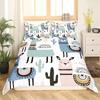Cute Cartoon Alpaca Llama Cactus Print Duvet Cover Set Full Size, Alpaca Bedding Set Botanical Animal Comforter Cover,Multicolor
