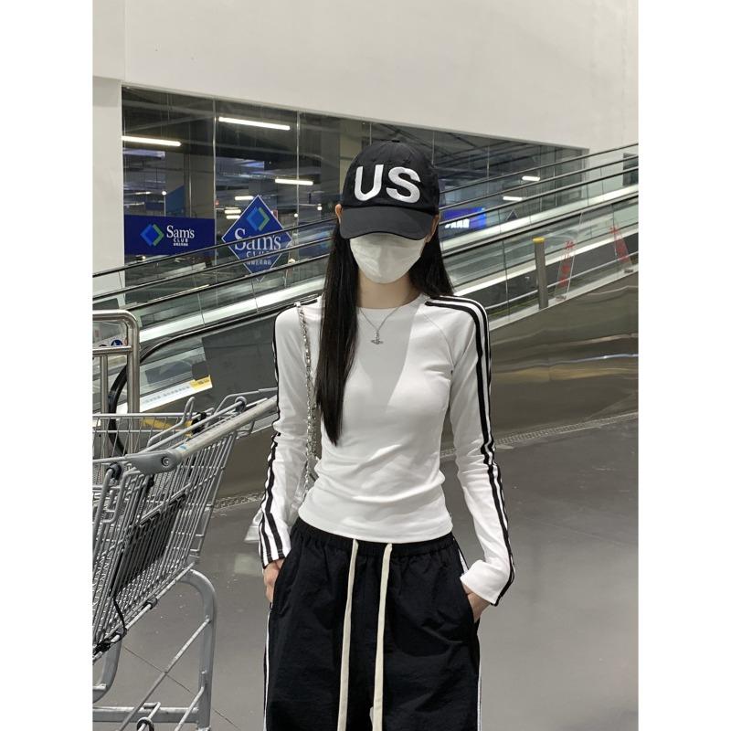 Дизайн Чувство Бар Тонкий Низ Рубашка Женская Spice Girl Ветер Прямое Плечо Облегающий Топ Весна Футболка с Длинным Рукавом Внутри