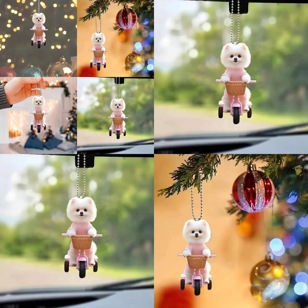 Акриловый мультяшный велосипед, собака, автомобиль, декор для зеркала заднего вида, для аксессуаров интерьера автомобиля