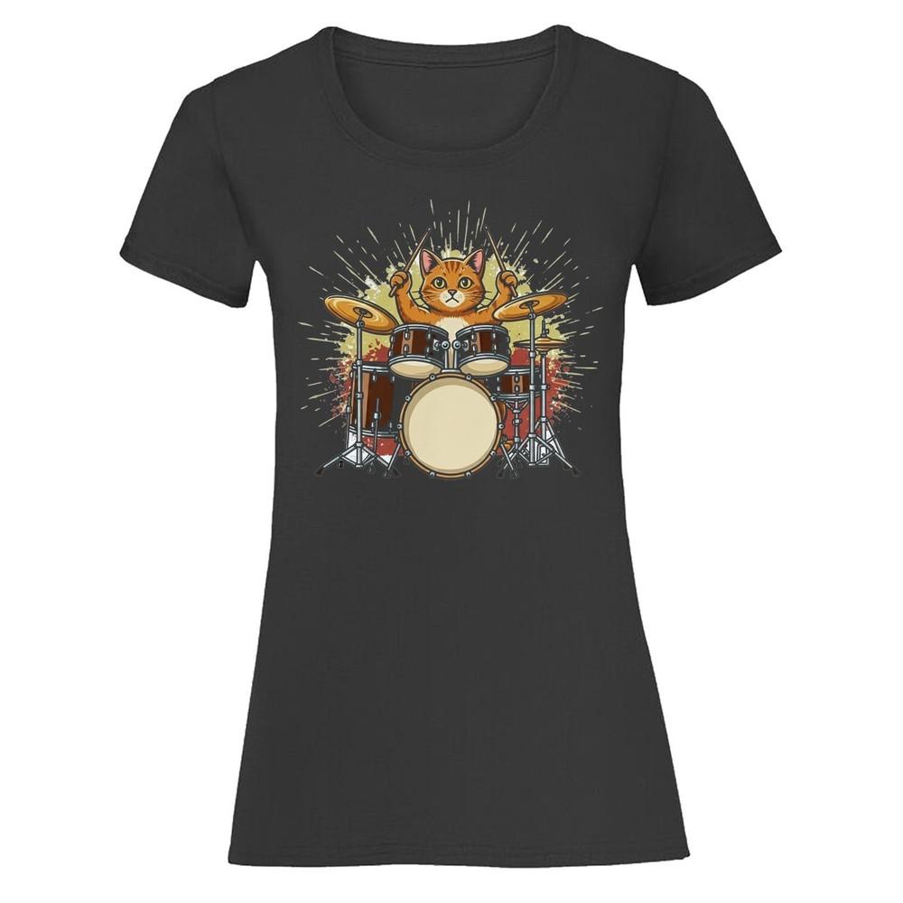 Женская футболка «Кот играет на барабанах» Музыка Барабанная установка Кошачье Животное Футболка