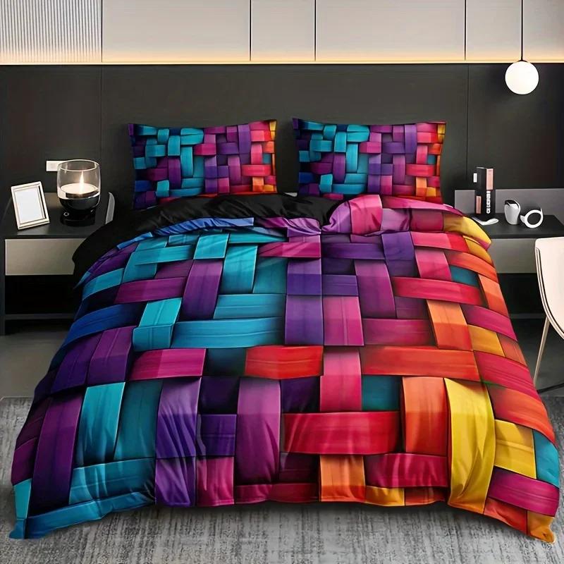 Геометрический красочный плед Комплект пододеяльника Дышащий тканый полиэстер Всесезонный комплект из 3 предметов с 1 пододеяльником и 2 наволочками