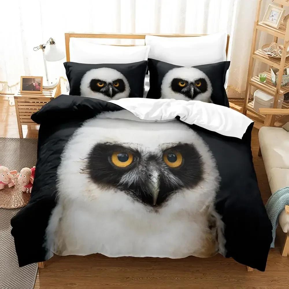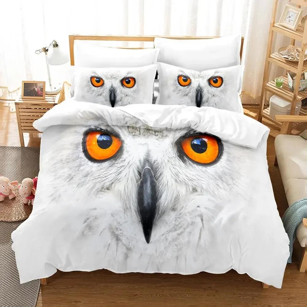 Комплект пододеяльника с совой Микрофибра Милый Белая сова Пододеяльник Птица Животное Покрывало для мальчиков Подростков Взрослых Двуспальный Размер Королевы