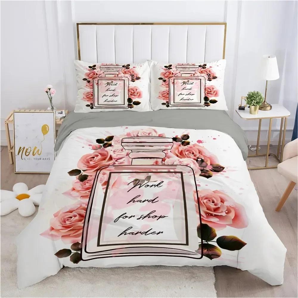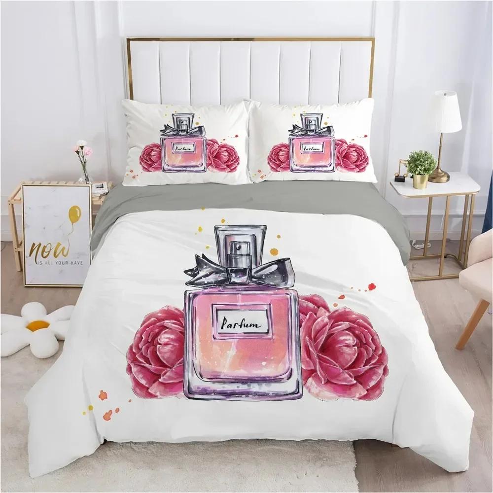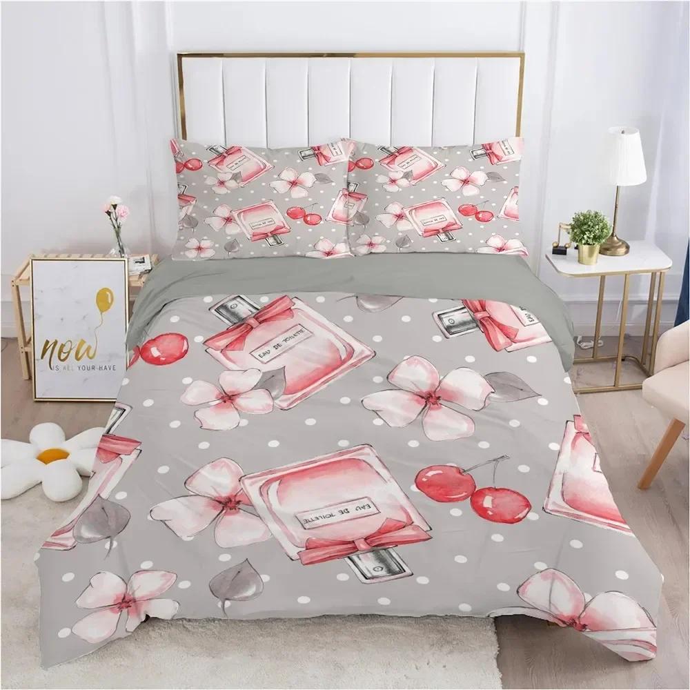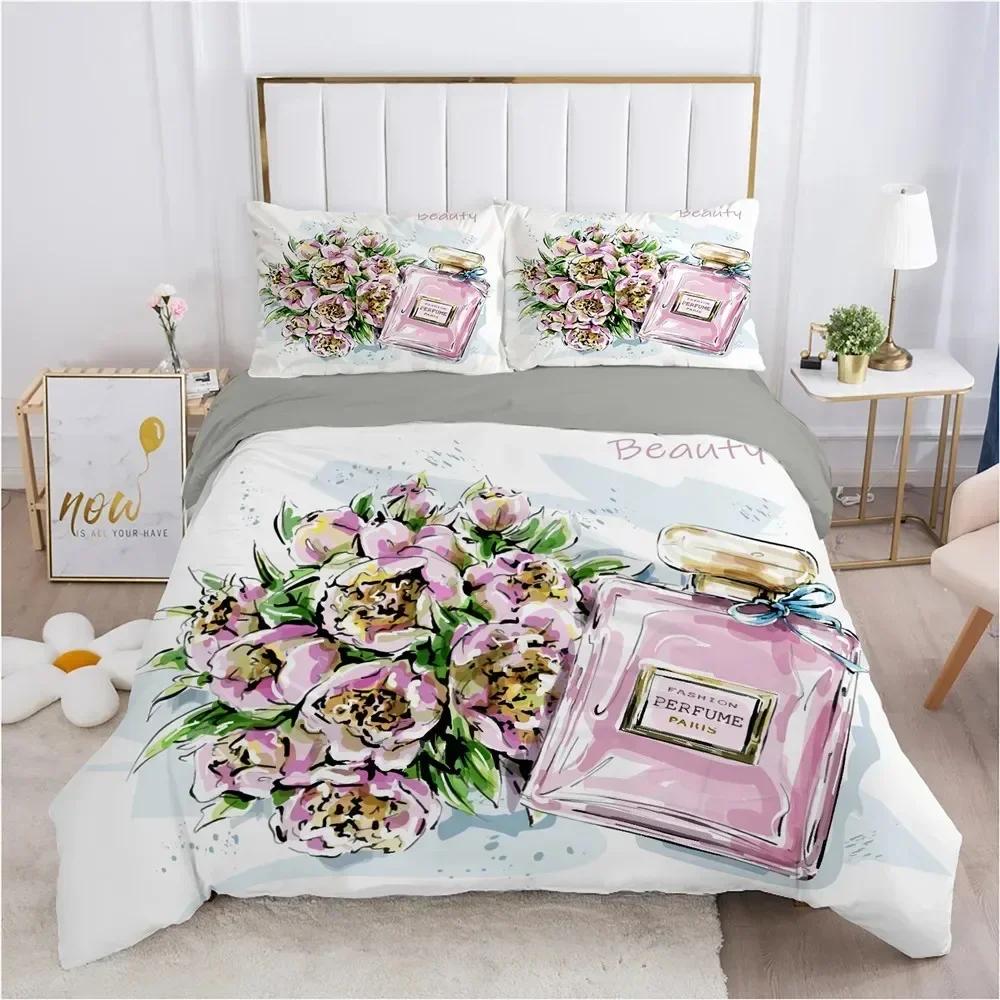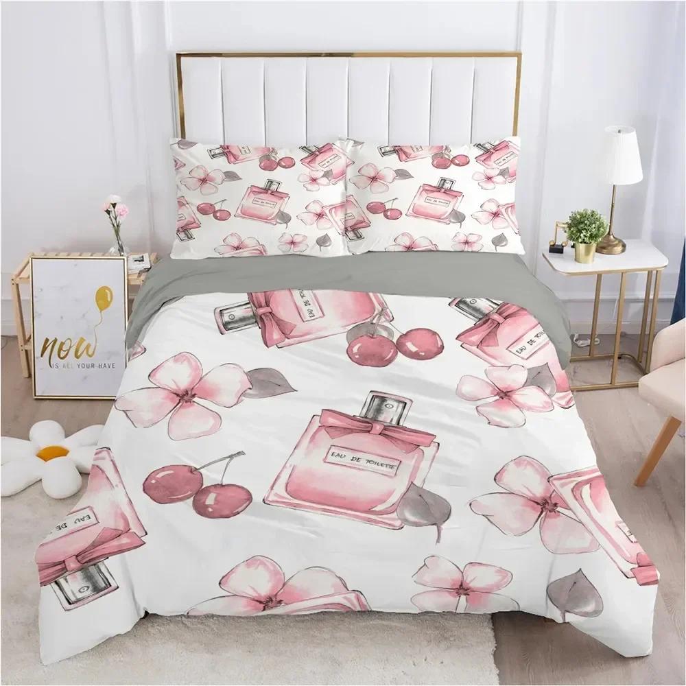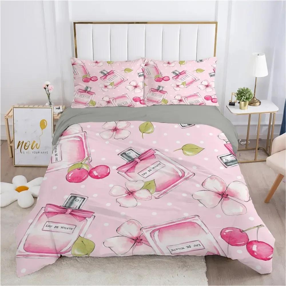 Постельное белье с цветочным принтом, розовый комплект постельного белья с макияжем и наволочкой, романтичный модный подарок для девочек и женщин, комплект пододеяльника