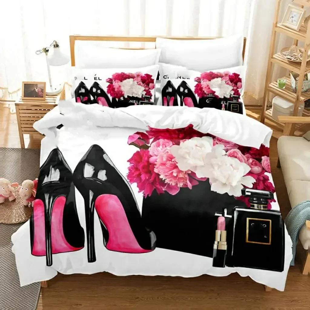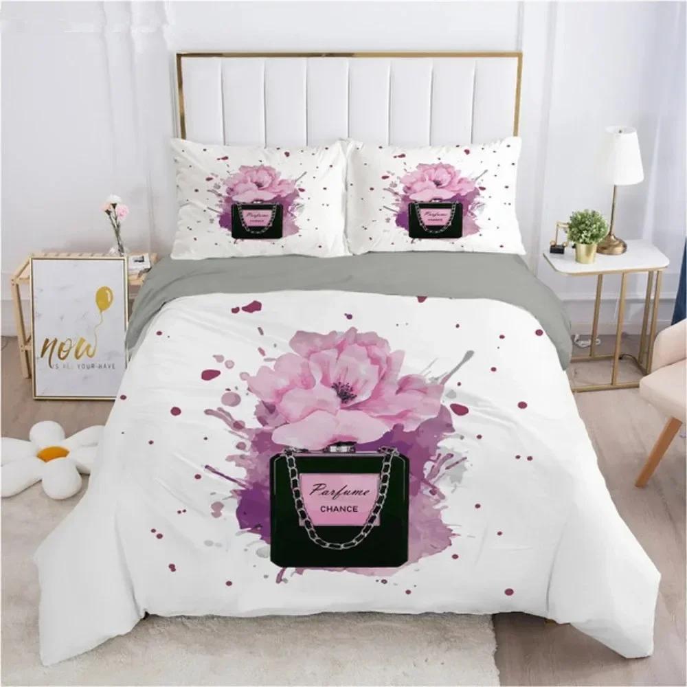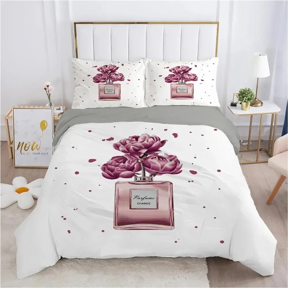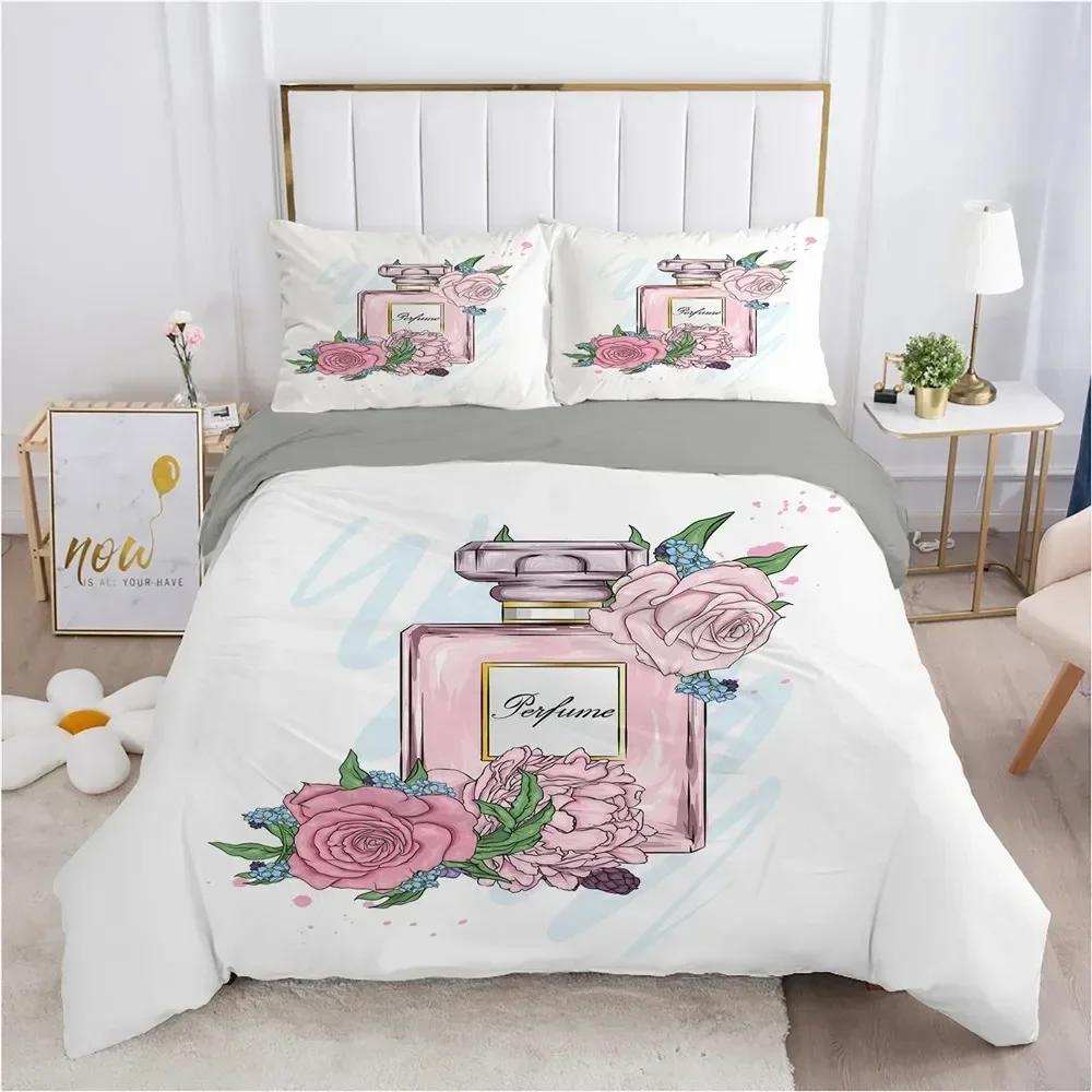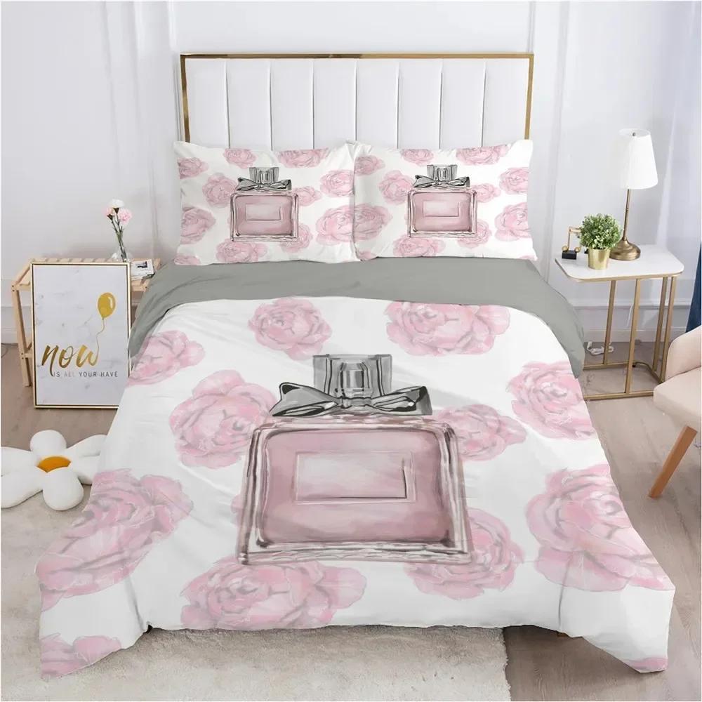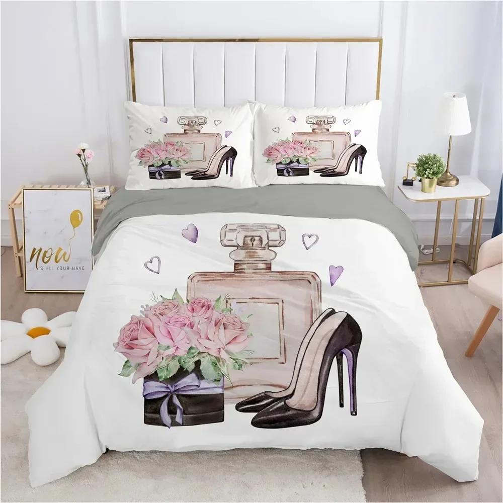 Постельное белье с цветочным принтом, розовый комплект постельного белья с макияжем и наволочкой, романтичный модный подарок для девочек и женщин, комплект пододеяльника