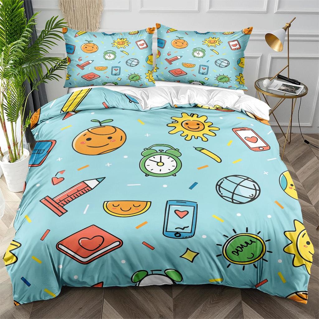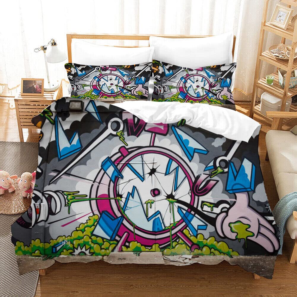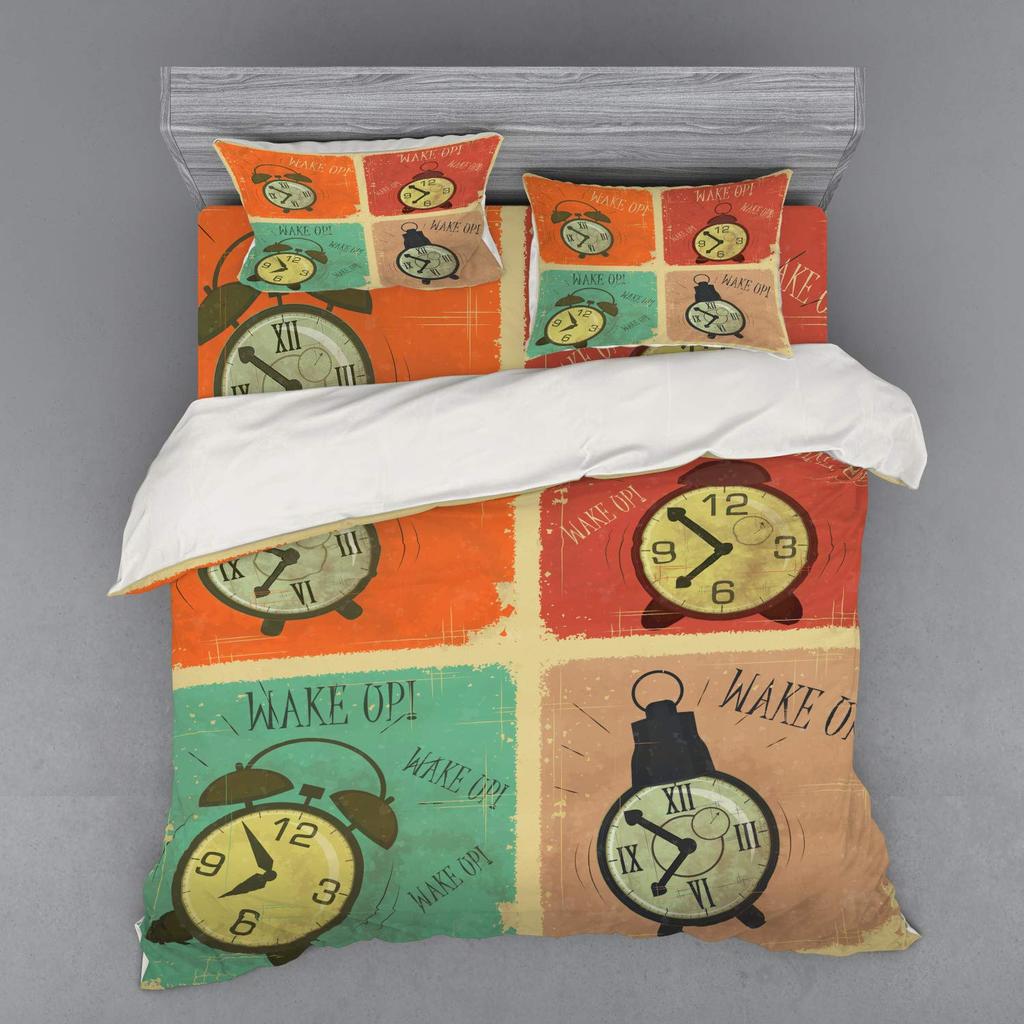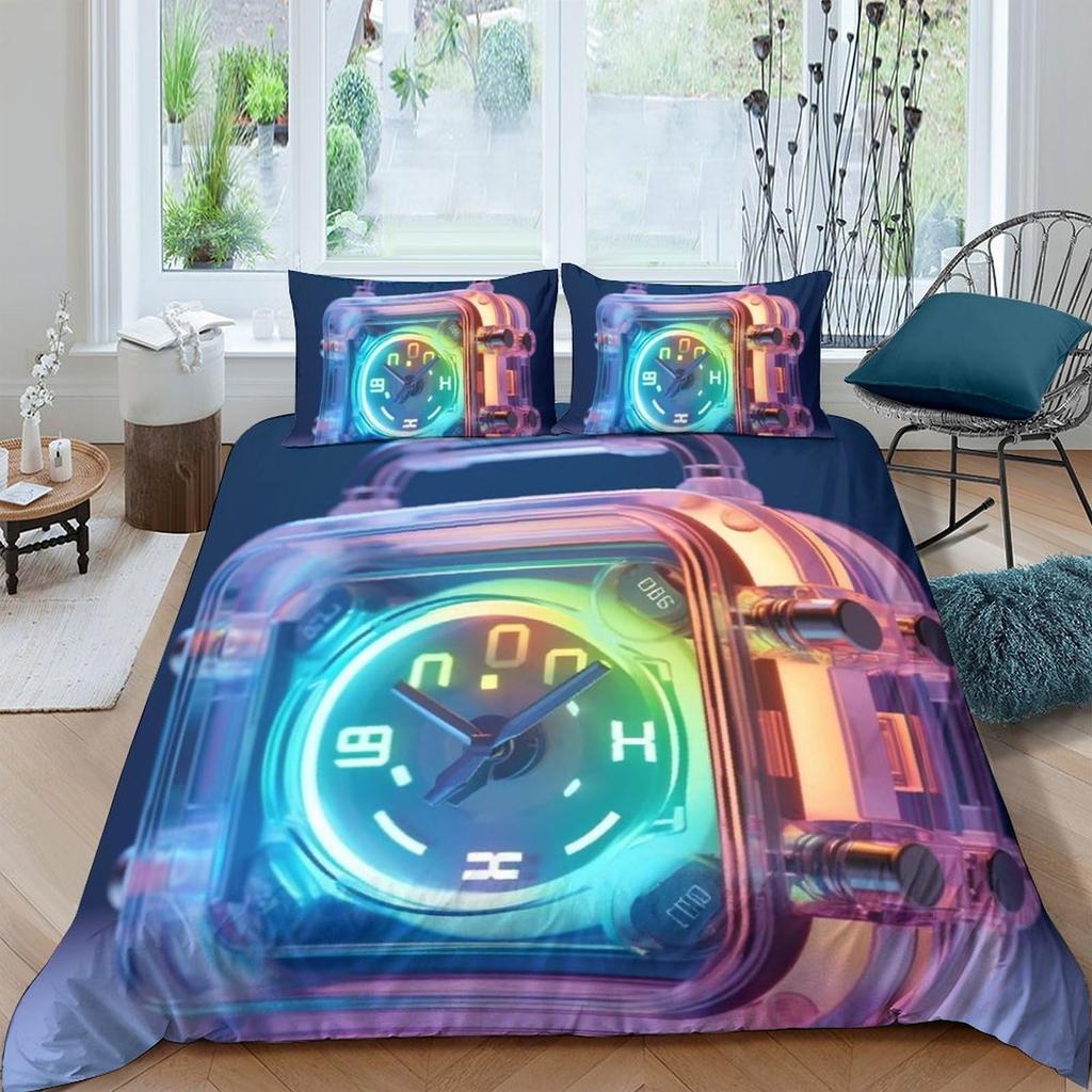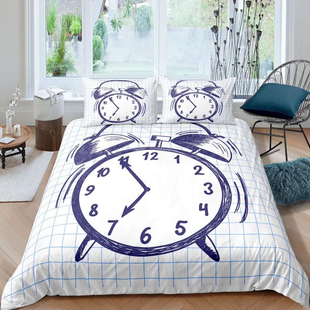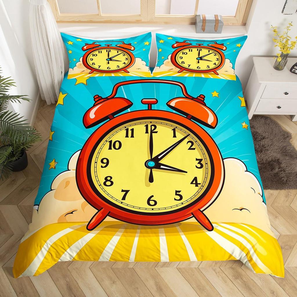 Clock Duvet Cover Set For Kids Teens Boys Girls Lightweight Down Quilt Covers Bedroom Decor 2 Pillowcases 1 Duvet Cover No Quilt
