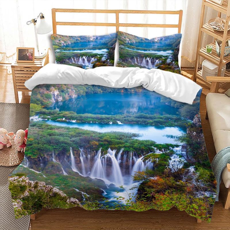Наборы Пододеяльников с Принтом «Водопад» Для Подростков Взрослых Размер Queen Легкие Покрывала на Одеяло Декор Комнаты 2 Наволочки 1 Пододеяльник Без Одеяла