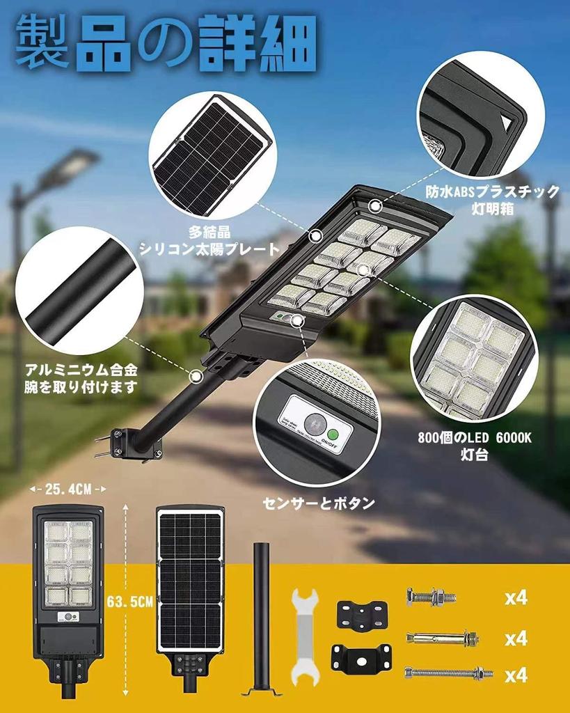 [2025 Прочный Новый Апгрейд - 800 Светодиодов] Светодиодный Уличный Фонарь на Солнечной Батарее, Наружный, 800 Вт, 40 000 Люмен, Водонепроницаемость IP67, Датчик Света, Датчик Движения, Свет
