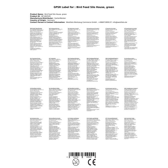 Mangeoire pour oiseaux - WESTFALIA - Silo maison - Vert - Capacité 500g - Poids 190g