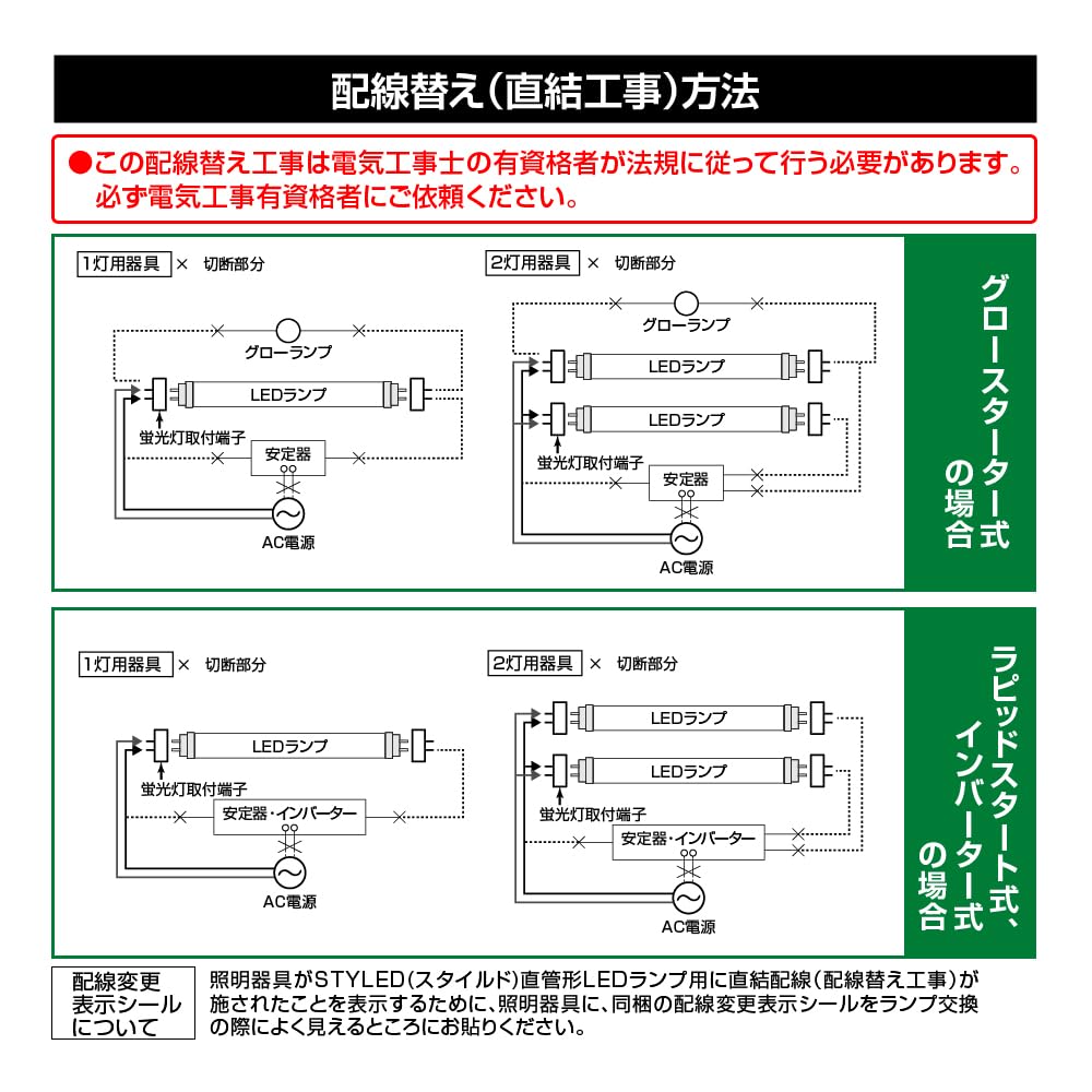 Styled LED Fluorescent Light Bulbs, Set of 6, 40W, 2600lm, Straight Tube LED Lamps, Glow Start (FL Type), No Installation Required, Daylight White