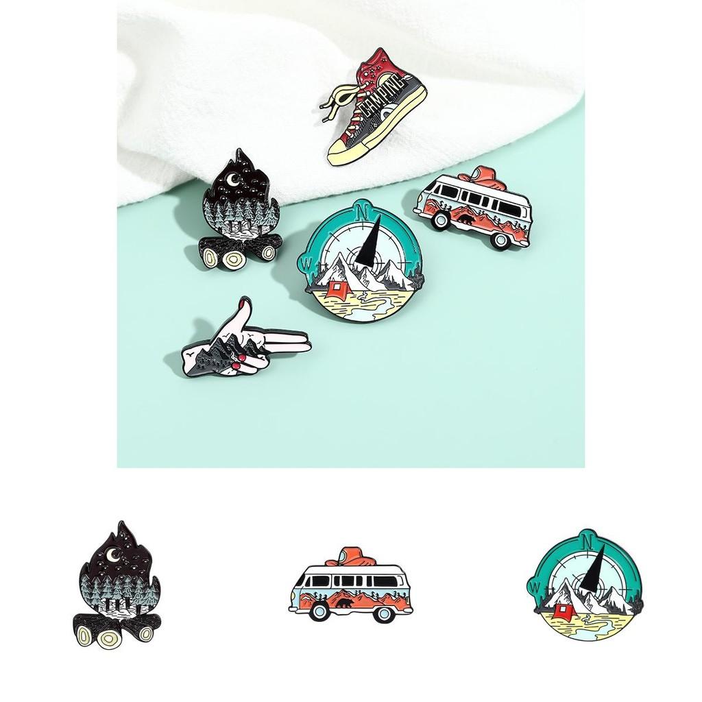 Creative Cartoon Landscape Pin Unique Geometric Design Metal Brooch For Fashionable Attire