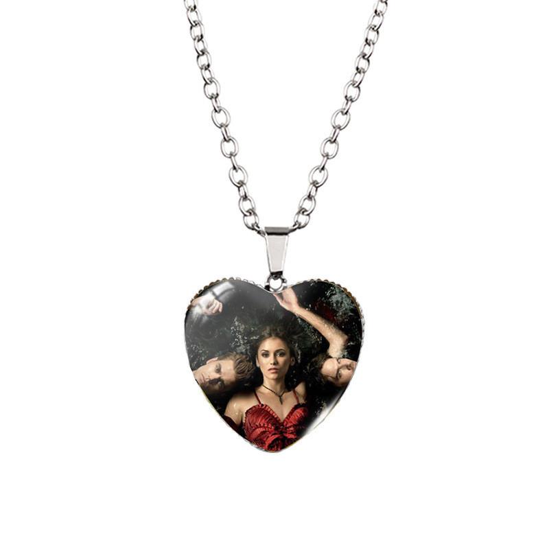 Модное ожерелье в форме сердца для поклонников Дневников вампира. Потрясающая подвеска из сплава и стекла