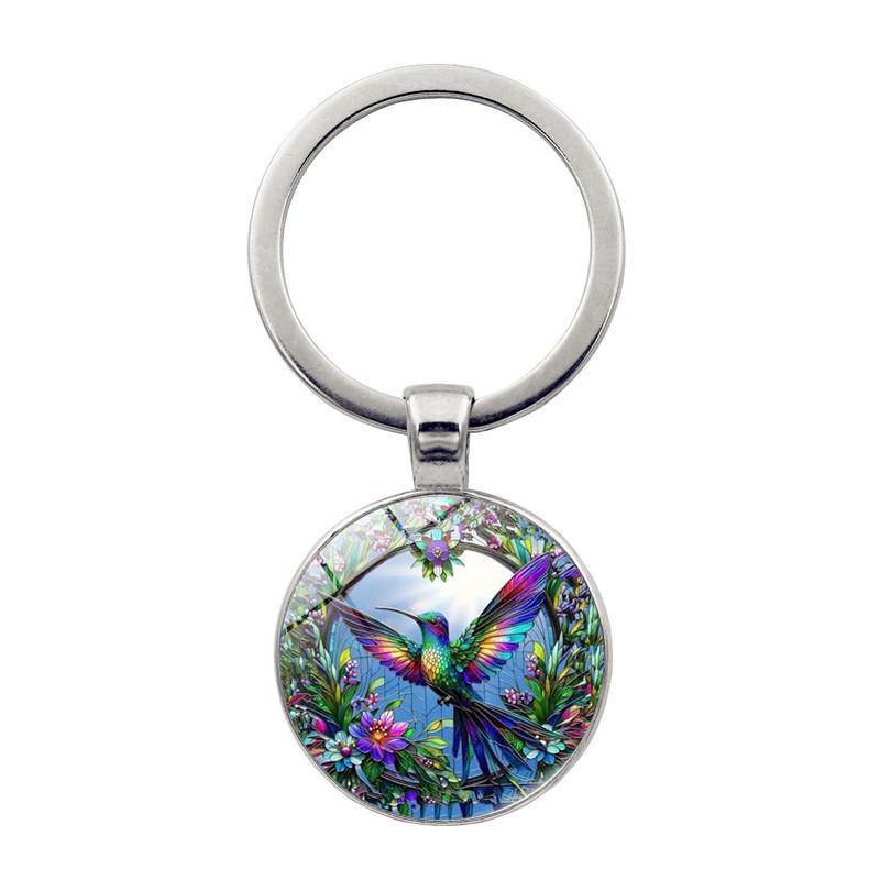 Colorful Hummingbird Gemstone Keychain Pendant Stylish Metal Keyring Creative Gift
