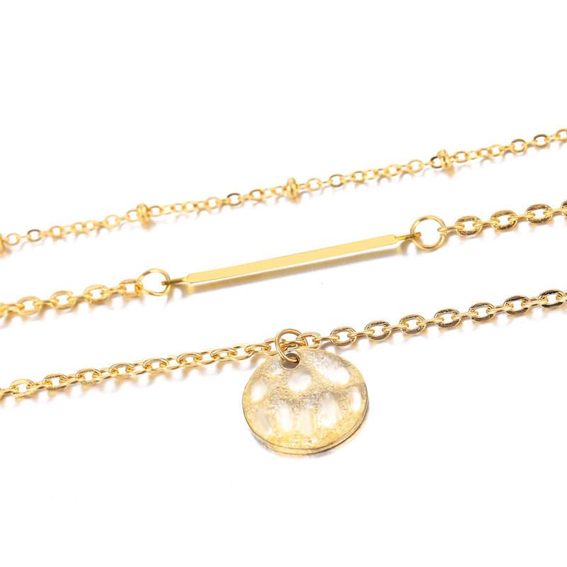 Модный дизайн: Это многослойное золотое ожерелье имеет привлекательный геометрический дизайн, что делает его модным аксессуаром, дополняющим любой наряд.