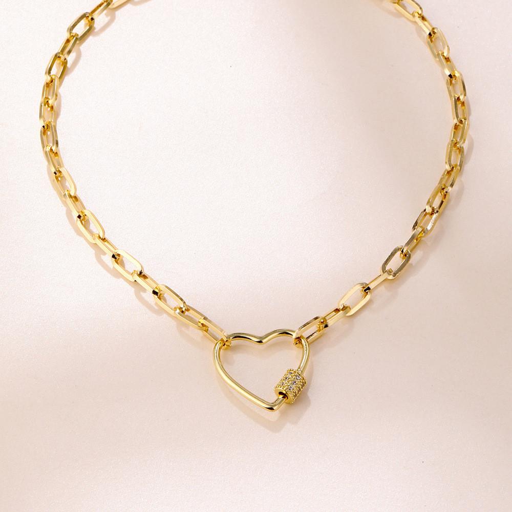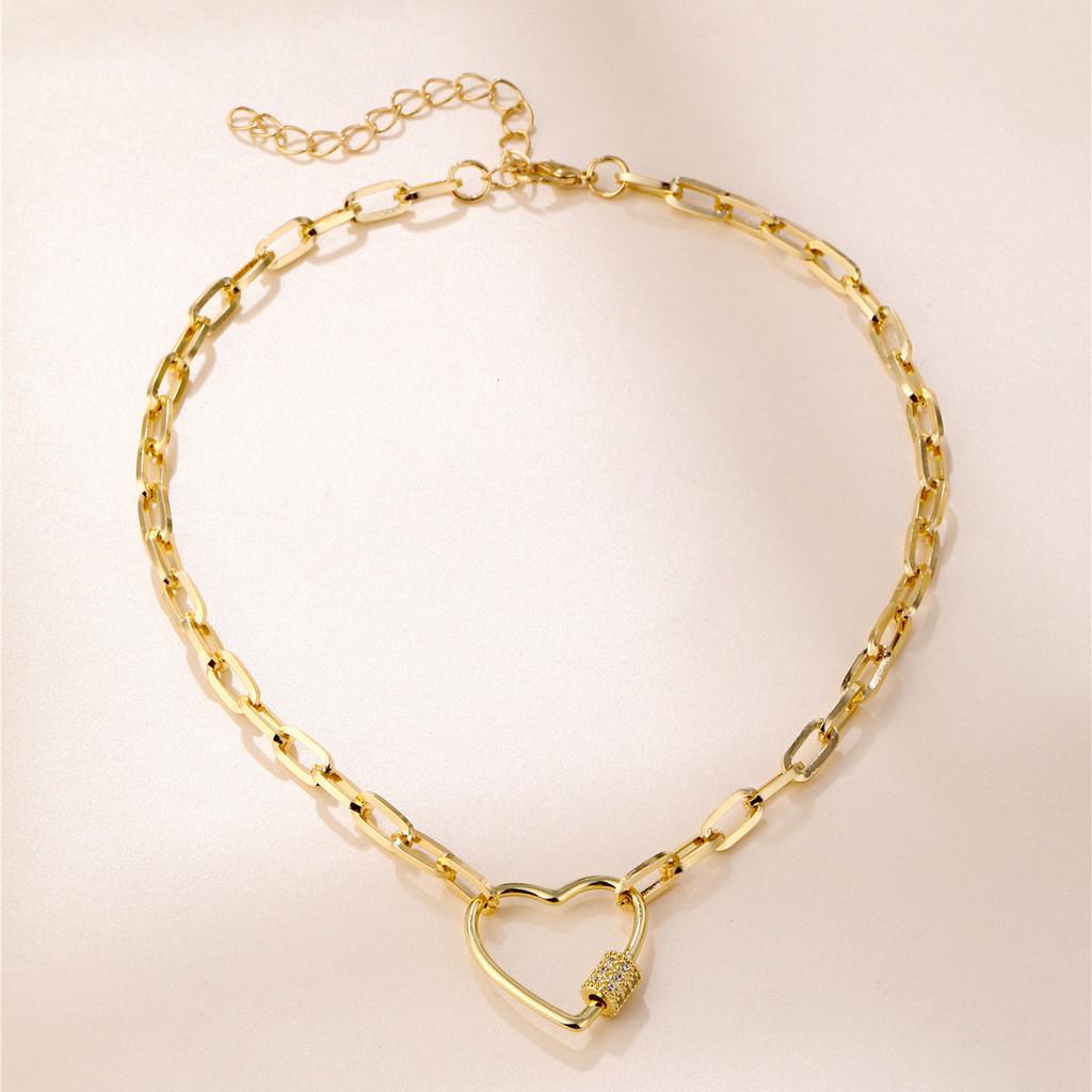 Trendy Heart-shaped Rhinestone Chunky Chain Necklace For Fashionable Womens Accessories