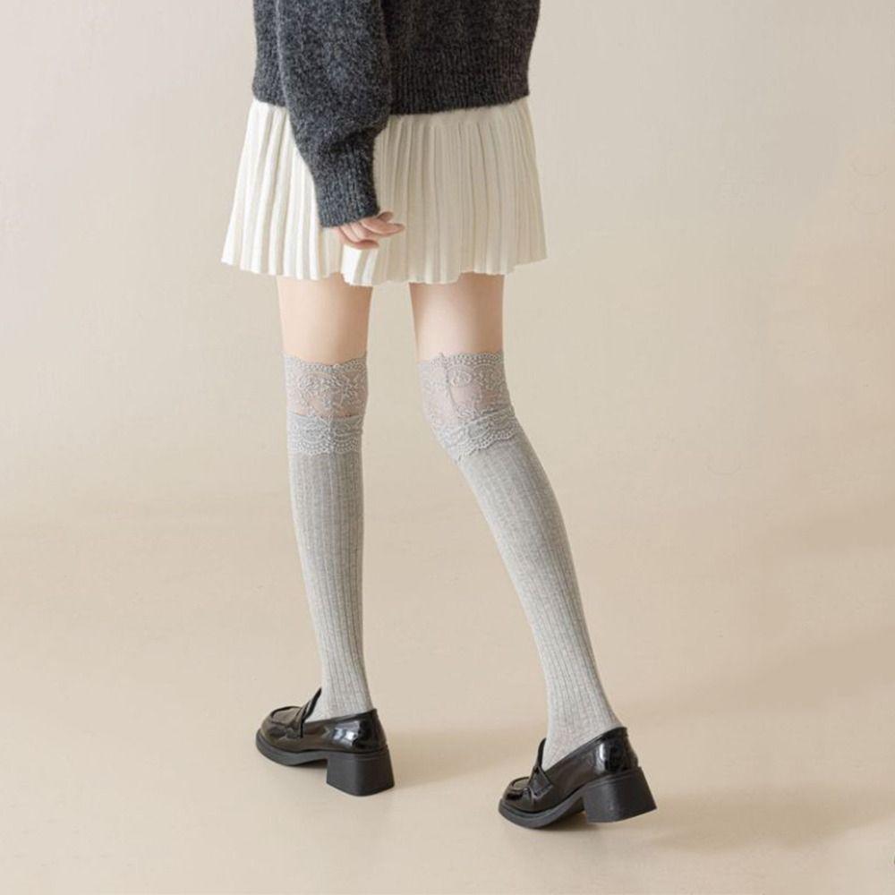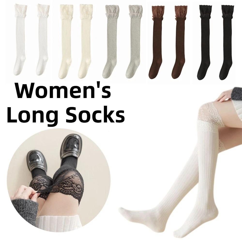 Дышащие женские гольфы с напуском, однотонные гольфы до колена, модные вязаные чулки в стиле лолиты