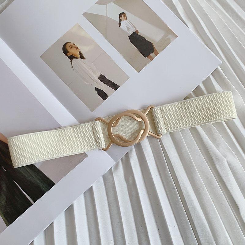 Elegant Korean Style Women's Metal Buckle Belt With Elastic Slimming Waist Design For Dresses