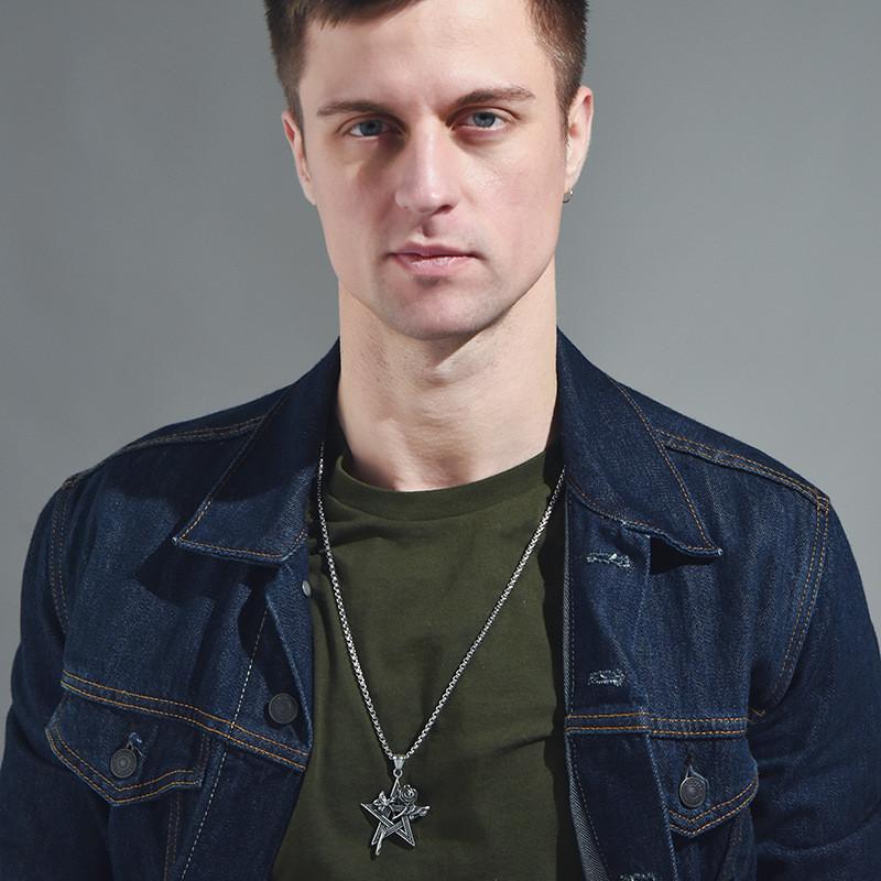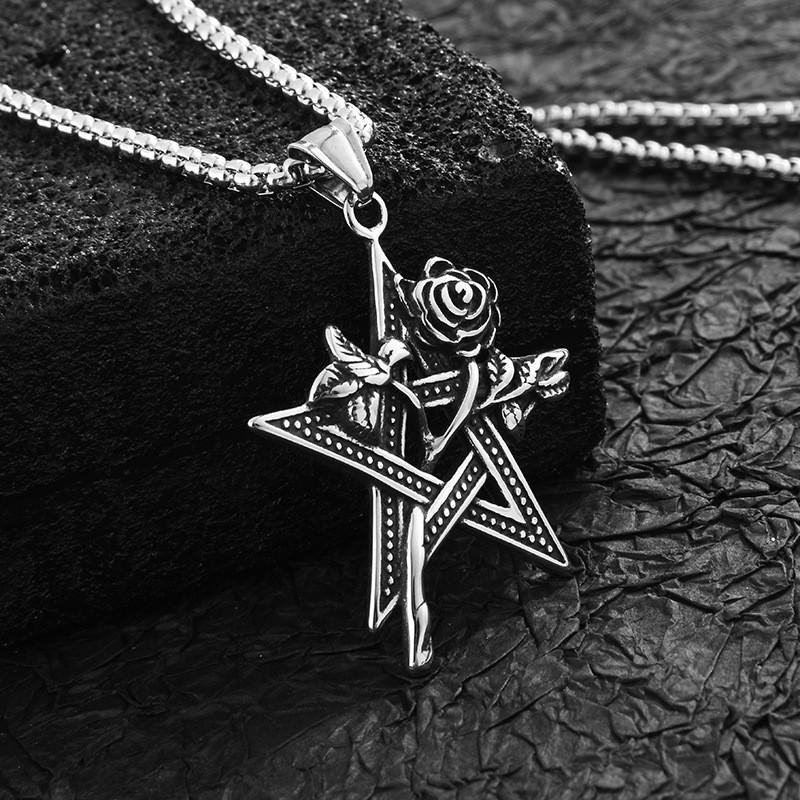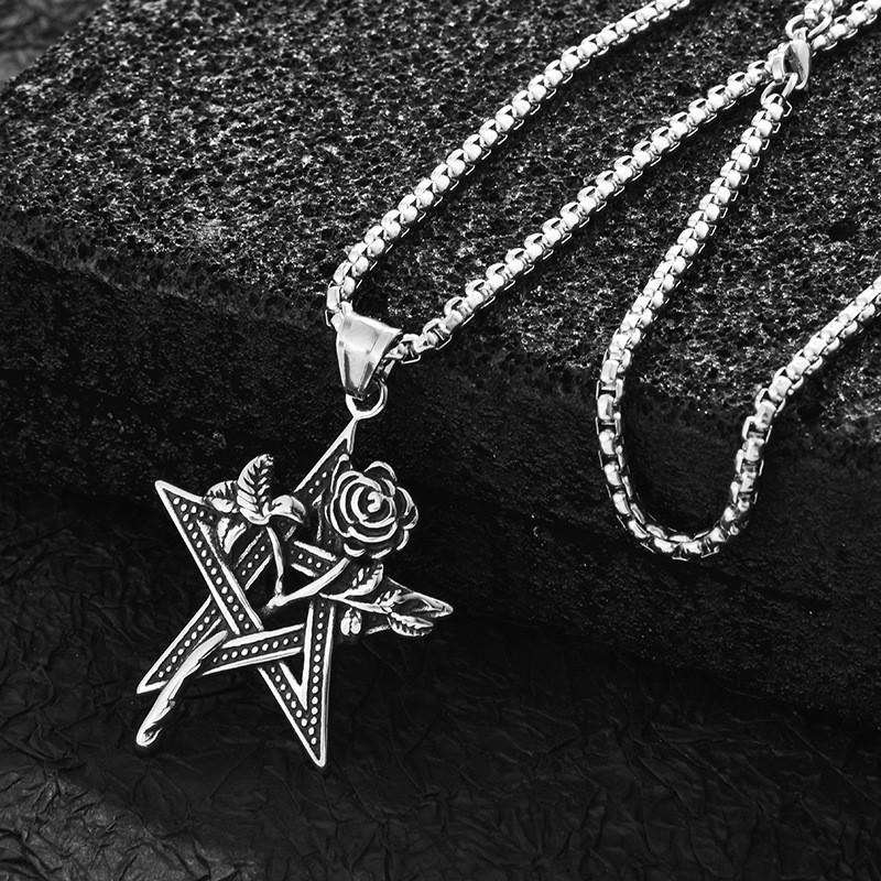 Поднимите свой уровень аксессуаров с нашим модным ожерельем из титановой стали в стиле диджея, изысканным изделием, созданным как для мужчин, так и для женщин. Это ожерелье — не просто стильное дополнение к вашему гардеробу; он воплощает сочетание современной эстетики и вневременной элегантности. Ожерелье, изготовленное из высококачественной титановой стали, украшено эффектной подвеской в виде розы-звезды, которая привлекает внимание и вызывает разговоры.. Уникальный дизайн в виде пятиконечной звезды добавляет элемент интриги, делая его идеальным акцентом для тех, кто любит выделяться.