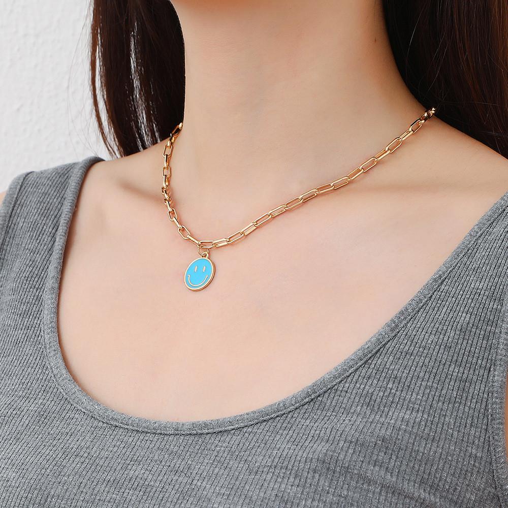 Модное ожерелье из сплава со смайликом и красочным геометрическим дизайном для стильной моды