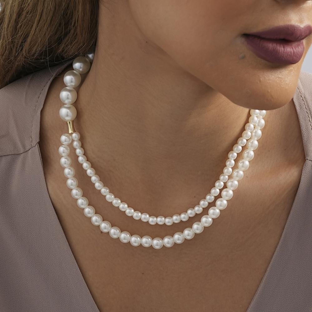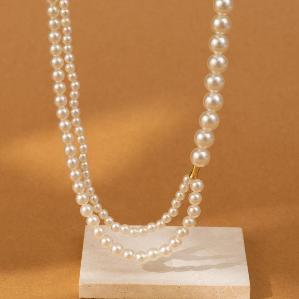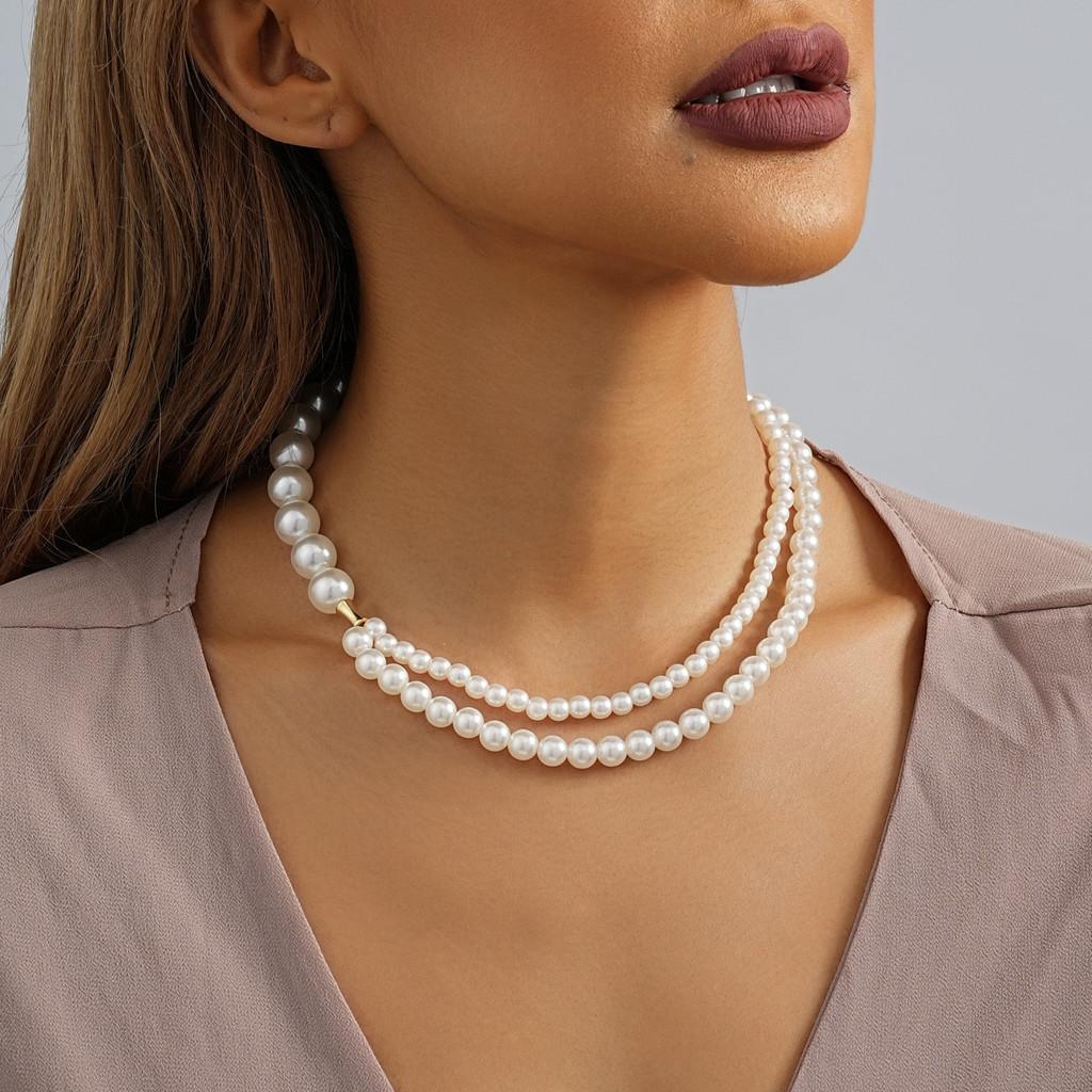 Fashionable 2023 Women's Double Layer Pearl Necklace Unique Geometric Design For Street Style
