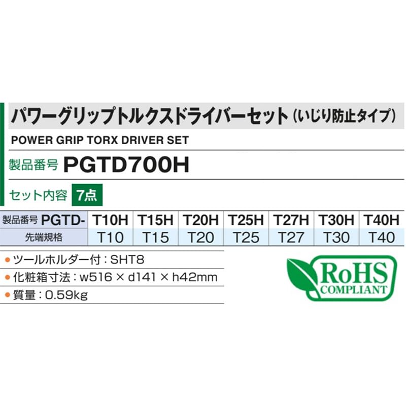 Набор отверток TONE Power Grip Torx PGTD700H Набор (Защищенный от несанкционированного доступа) Оранжевый, 7 предметов
