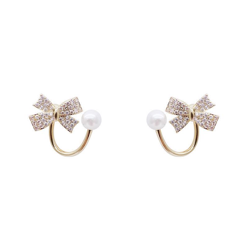 Шикарный дизайн: Стильный дизайн в виде банта со стразами добавляет нотку элегантности, делая эти серьги идеальными как для повседневной, так и для официальной обстановки.