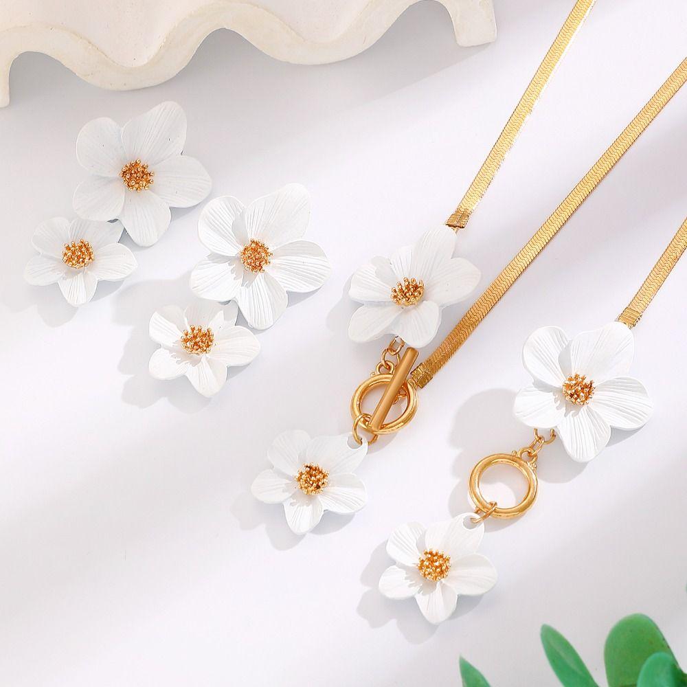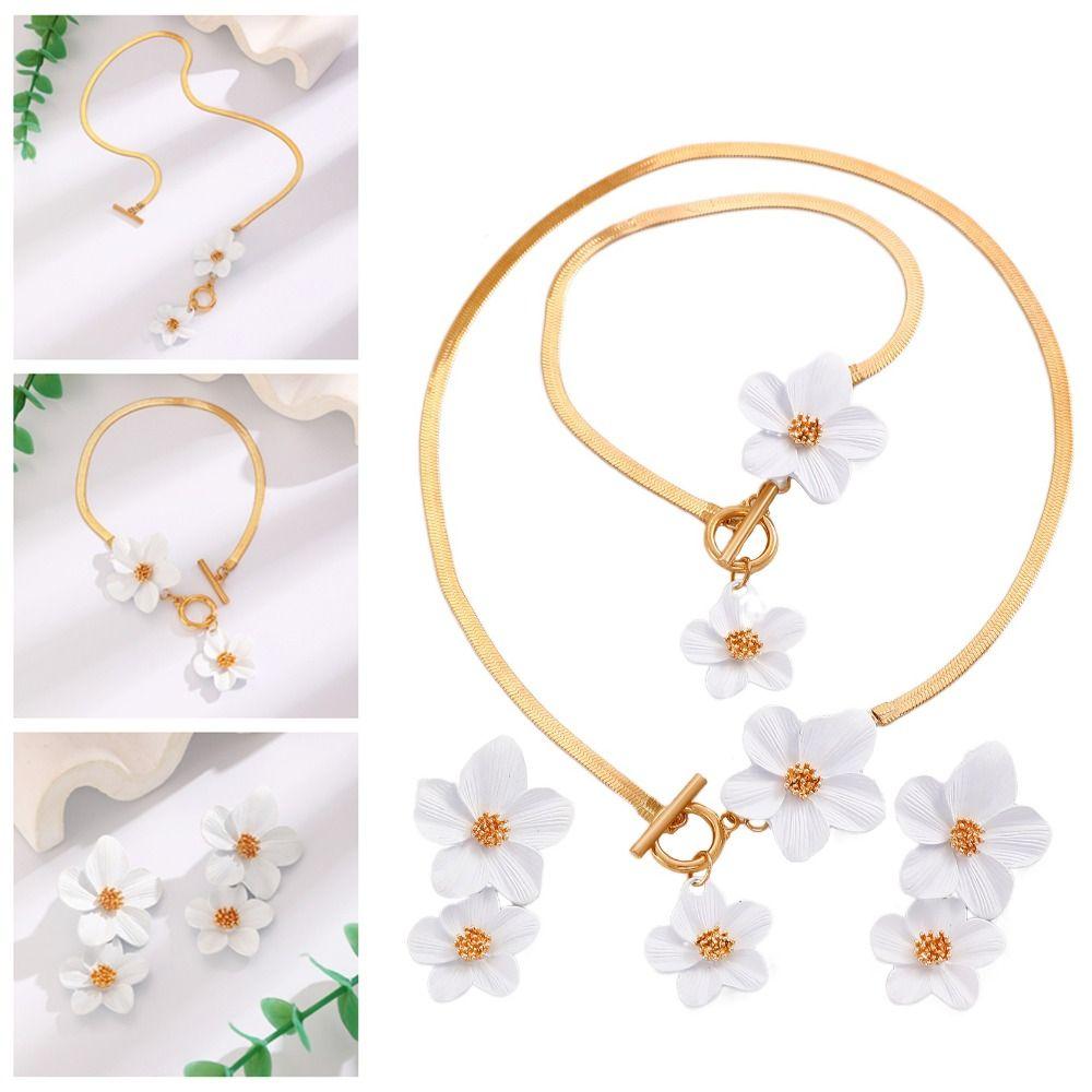 Металлический набор ожерелья и серег с цветами, застежка OT, подвеска, ювелирный набор, винтажный набор ювелирных изделий с цветами, женский
