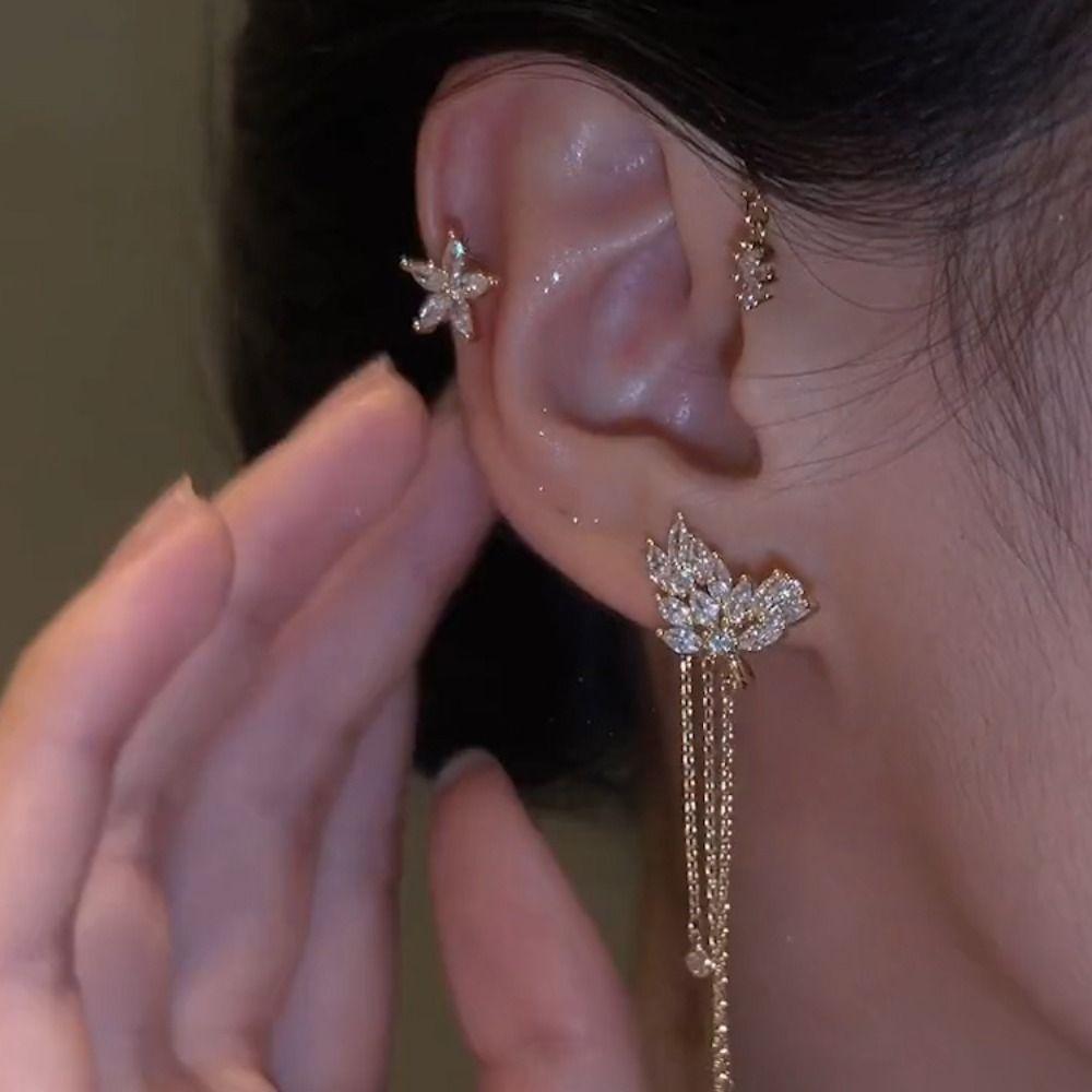 Сказочный Роскошный Кафф на Ухо с Кисточкой Корейский Стиль Клипса на Ухо Зажим для Козелка Уха Крючок для Уха-Бабочки Серьга для Девочек