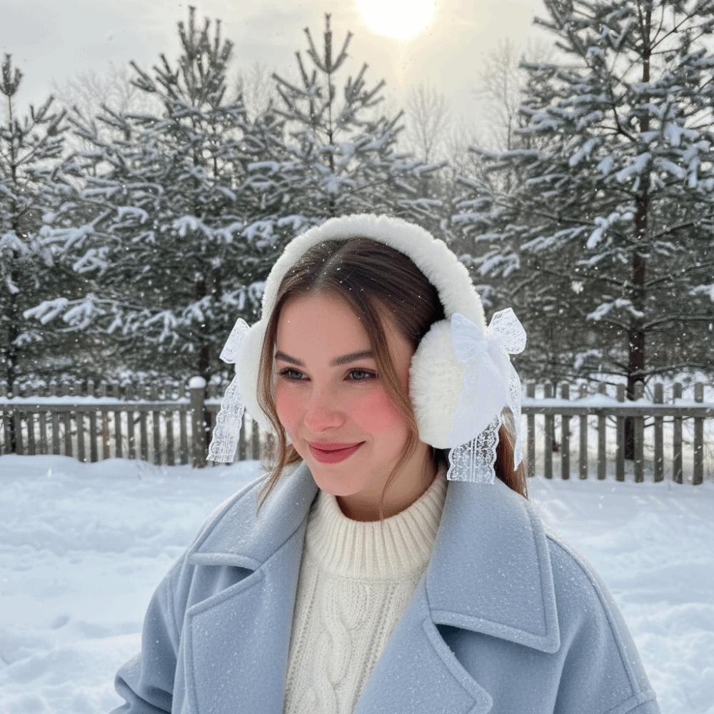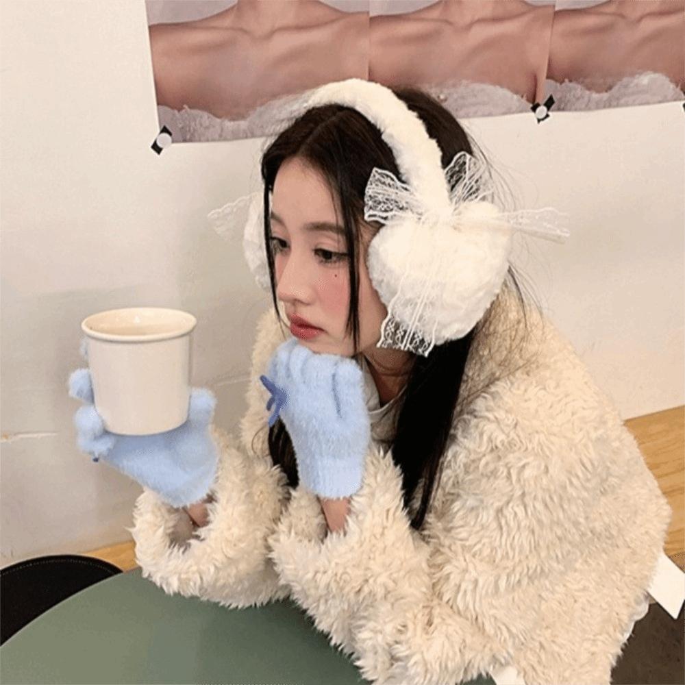Кружевные зимние плюшевые наушники с утолщенными ушными раковинами и милым бантом, согревающие уши, для велоспорта
