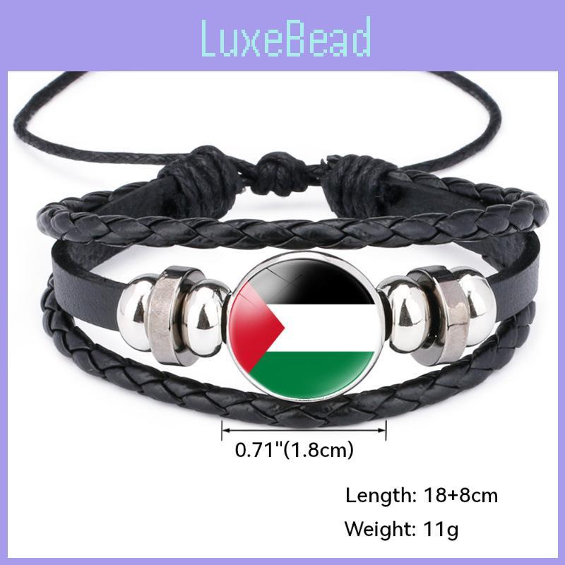 Браслет из драгоценных камней с многослойной кожей и дизайном палестинского флага, плетеный кожаный шнурок ручной работы, оптовая продажа