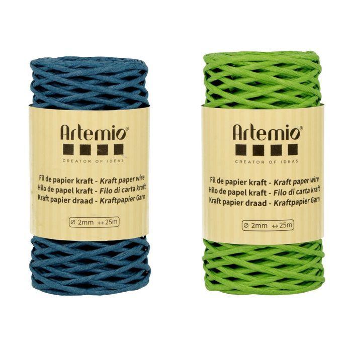 2 bobines fil kraft bleu azur/vert prairie 2mm x 25 m