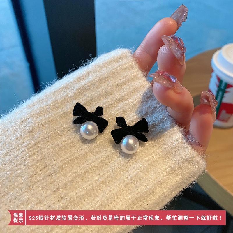 Trendy Butterfly Bow Earrings Pearl And Velvet High Fashion Ear Accessories