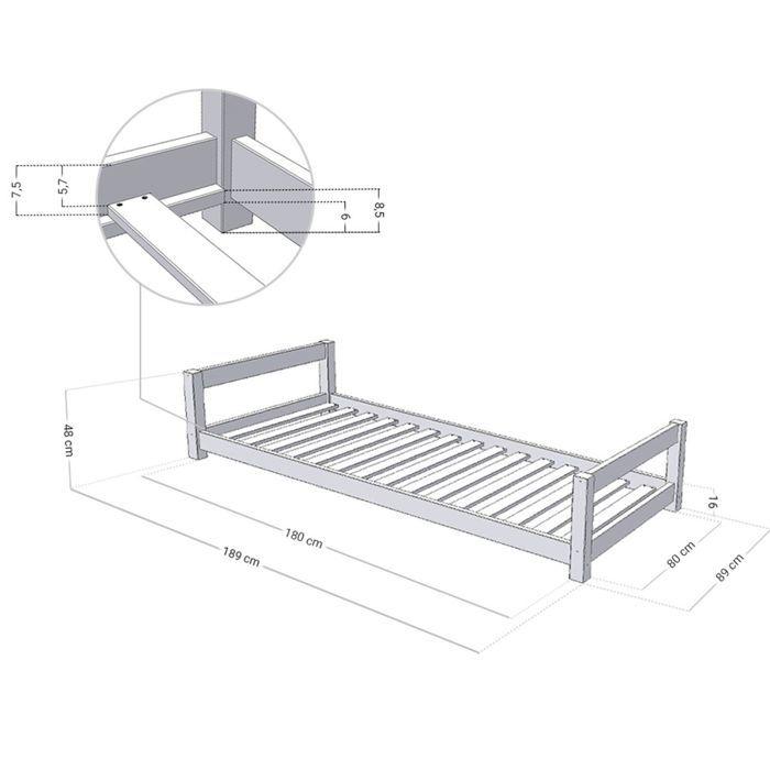 Lit enfant - BENLEMI - KIDDY - 80 x 180 cm - Bois massif - Montage facile