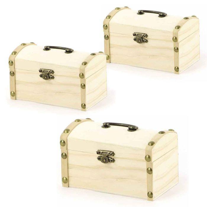 3 coffres de pirate en bois à décorer 8 x 8 x 13 cm