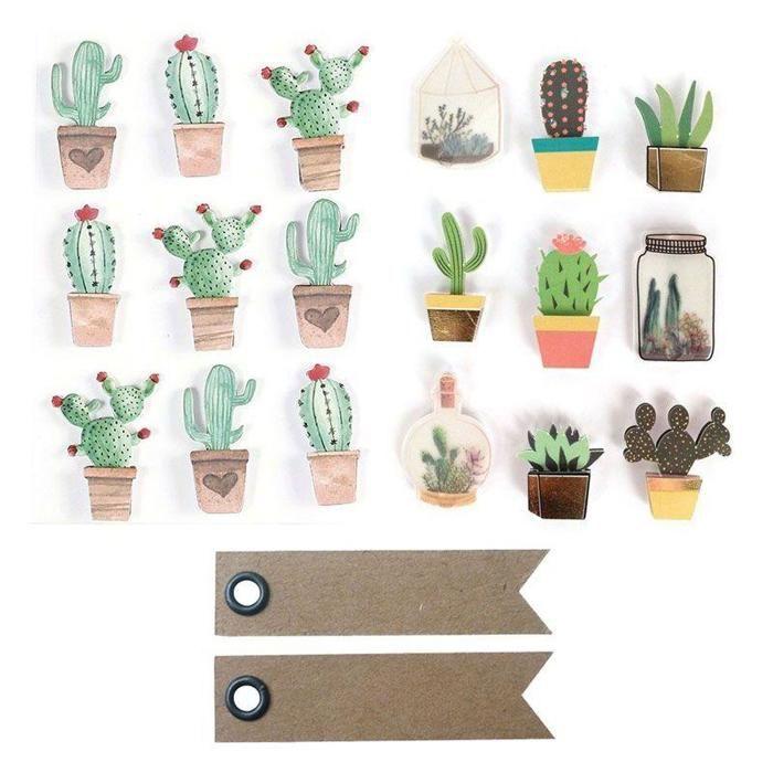 3D наклейки Кактус - GRAINE CREATIVE - 18 наклеек - Разноцветный - 20 крафтовых этикеток - Смешанный