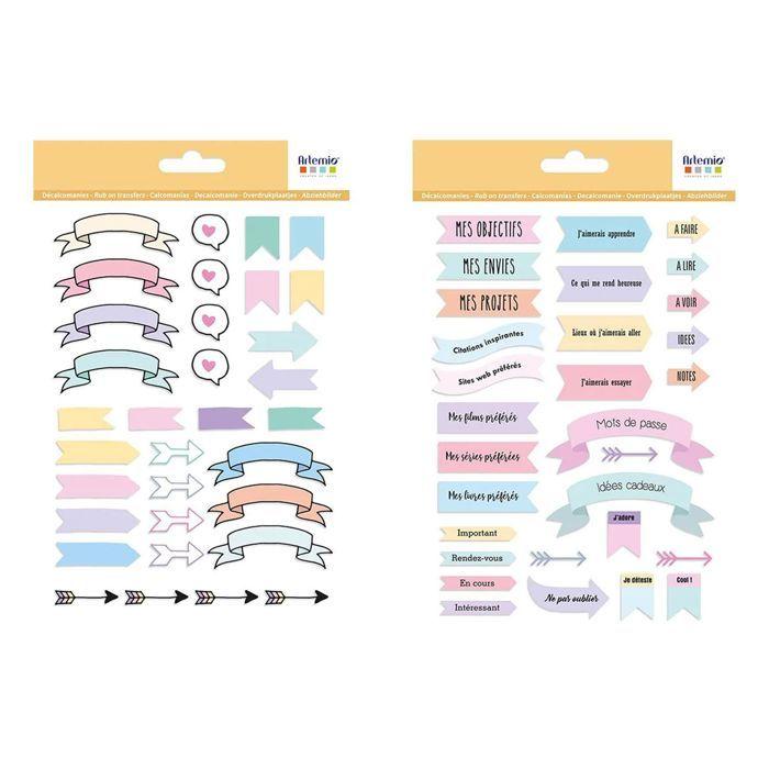 Rub'on stickers pour planner - ARTEMIO - 2 planches - Multicolore - Adultes & Enfants - 40 motifs
