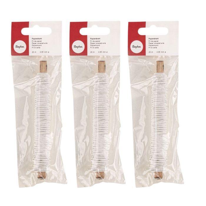 Бумажная нить - RAYHER - 3 катушки - Белый - Ø 0,55 мм - 20 м